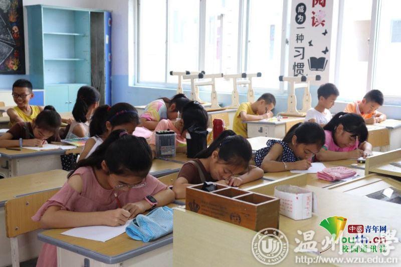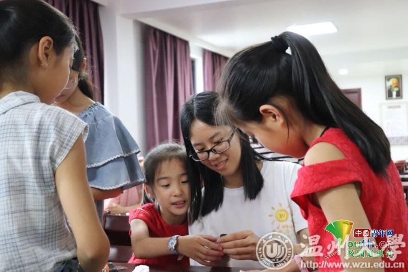 中国青年网温州8月22日电(通讯员 徐嘉浠)2019年7月8日,太阳集团tyc234cc教育学院“知心姐姐”暑期社会实践队活动正式启动。本次爱心支教团队“知心姐姐”来到蒲岐三小和蒲岐居民活动中心,以与儿童同创快乐童年为主题展开为期15天的支教活动。团队成员希望在伴孩子们度过别样的暑期生活的同时,充分调动孩子们的创造力、想象力与动手能力,跳脱平时书面作业的桎梏,回归本性。儿童创造力不可扼杀,童年时期的培养尤为重要,“知心姐姐”团队承担的就是这样一种角色——以创想塑童年。这不仅仅为孩子们喷薄的创想能力提供一个展现的平台,亦是为祖国的未来发展夯实了良好的基石,更是为社会的基层文化建设添砖加瓦。