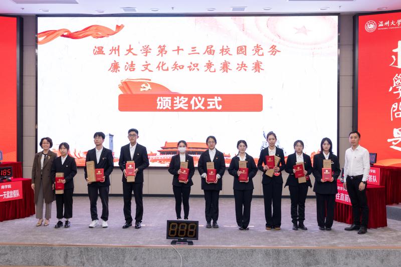 当代青年的现状,就是国家的未来,青年的廉洁教育就是国家的未来的风气。作为青年在校大学生,更应该自觉地学习廉洁从政的准则,增强反腐倡廉意识,做一名廉洁修身的当代大学生!校园党务廉洁知识竞赛还可以这样进行?来自温大5个学院的6支代表队进入决赛,进行必答题、抢答题、危险题、幸运题四个环节竞赛,现场观众积极参与其中,诗歌朗诵、有奖竞答、猜红色歌曲、猜红色影视作品,她们样样行;在竞赛过程中,各队选手充分展示出扎实的理论基础和沉稳的心态,为五四青年节增添了多元的青春色彩。