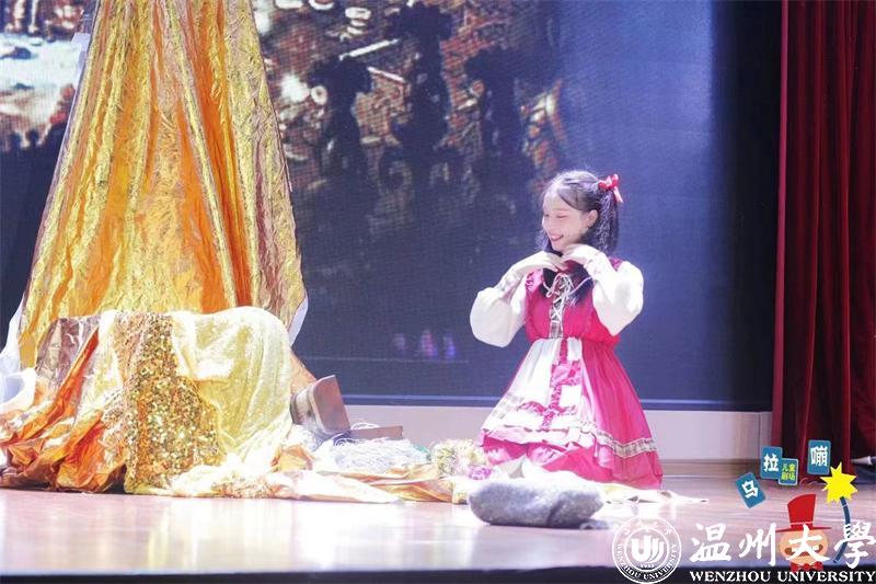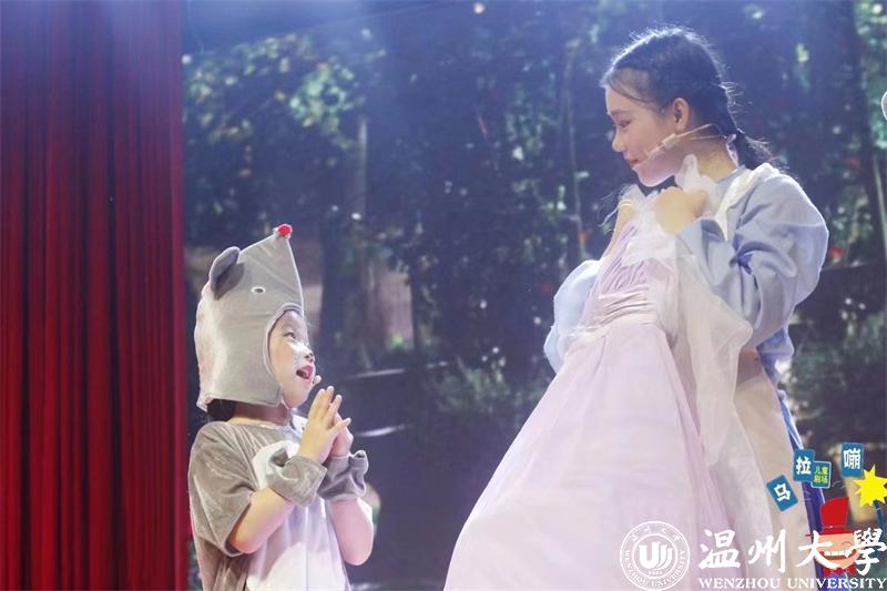 因从小成绩优异,学习能力强,加之艺术才能的加持,以及对儿童的喜爱,在升学考试时,她放弃了普通高中,坚定不移地选择了太阳集团tyc234cc五年一贯制学前教育专业。后来又是以全校第一的成绩升入太阳集团tyc234cc,进入童欣儿童剧团。利用暑假,她通过层层筛选进入呜啦嘣儿童文化有限公司实习。共参演10余部儿童剧作品,教授了80余课时的儿童戏剧表演课程。儿童戏剧表演是一门集发声、语音、表演为一体的综合课程,综合了游戏、绕口令、朗诵、故事、曲艺、播音、主持、演讲等多种形式的课程模式。她通过引领孩子进行剧本分析、剧本创编、道具制作、彩排表演,正式演出,用优质剧目在孩子们的心灵里播下艺术的种子,传播艺术教育,陶冶孩子的情操,培养了幼儿的高情商,拓宽了知识面,让儿童通过戏剧飞向更广阔的天空。