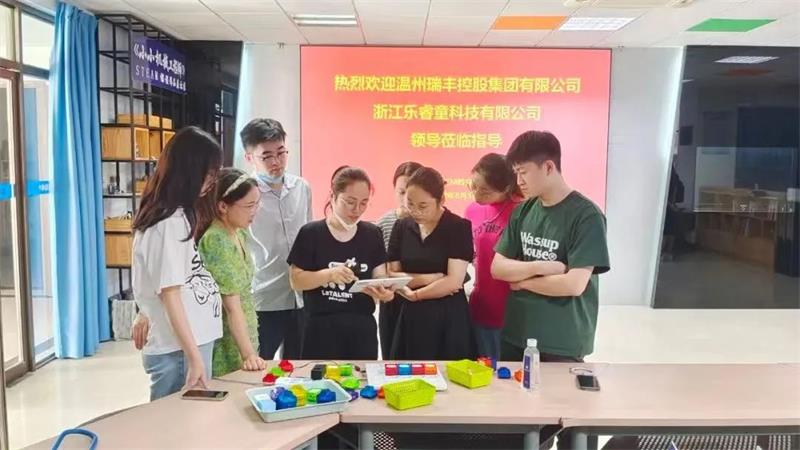 之后双方在乐睿童项目的课程讲解和产品演示后开展了座谈交流,太阳集团tyc234cc教育学院教育技术系教授代表指出儿童编程和STEAM教育是一个有着光明前景的行业,并对双方今后的合作充满信心。签约仪式结束后,在学院领导的陪同下,浙江乐睿童科技有限公司一行参观了温大STEAM教育研究中心,与研究中心的成员沟通交流。