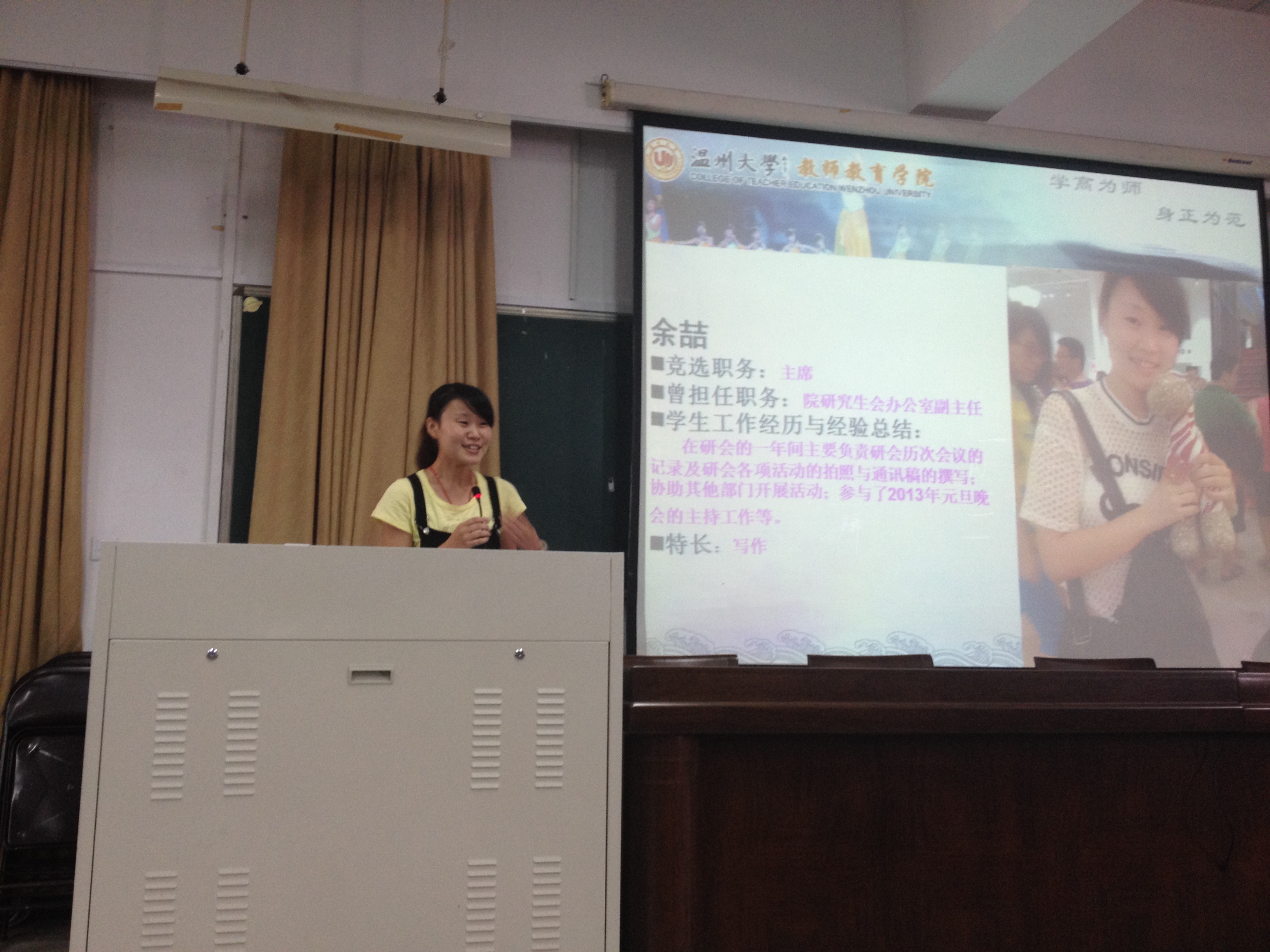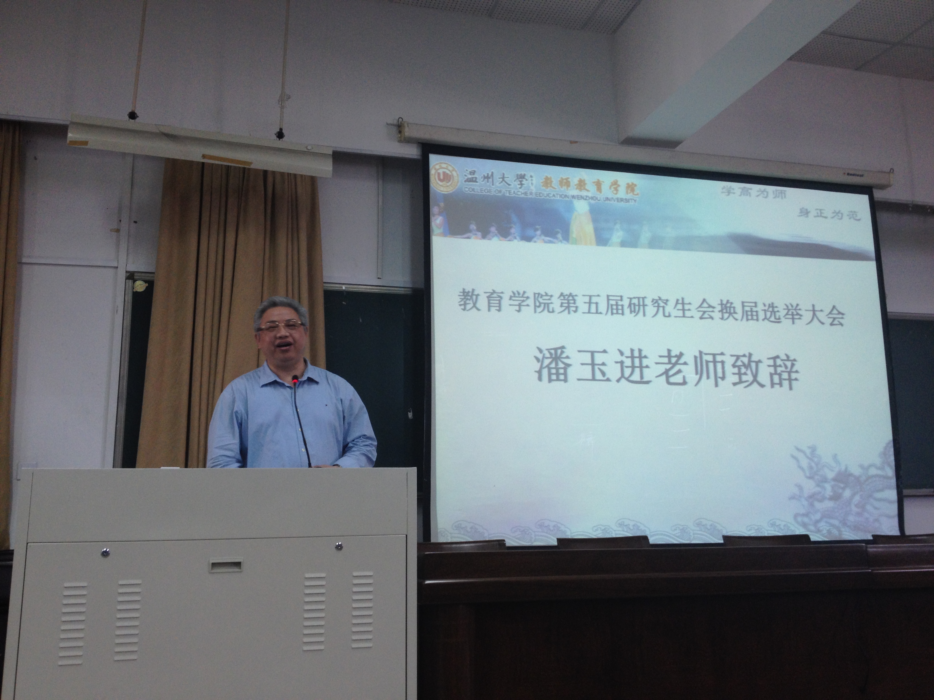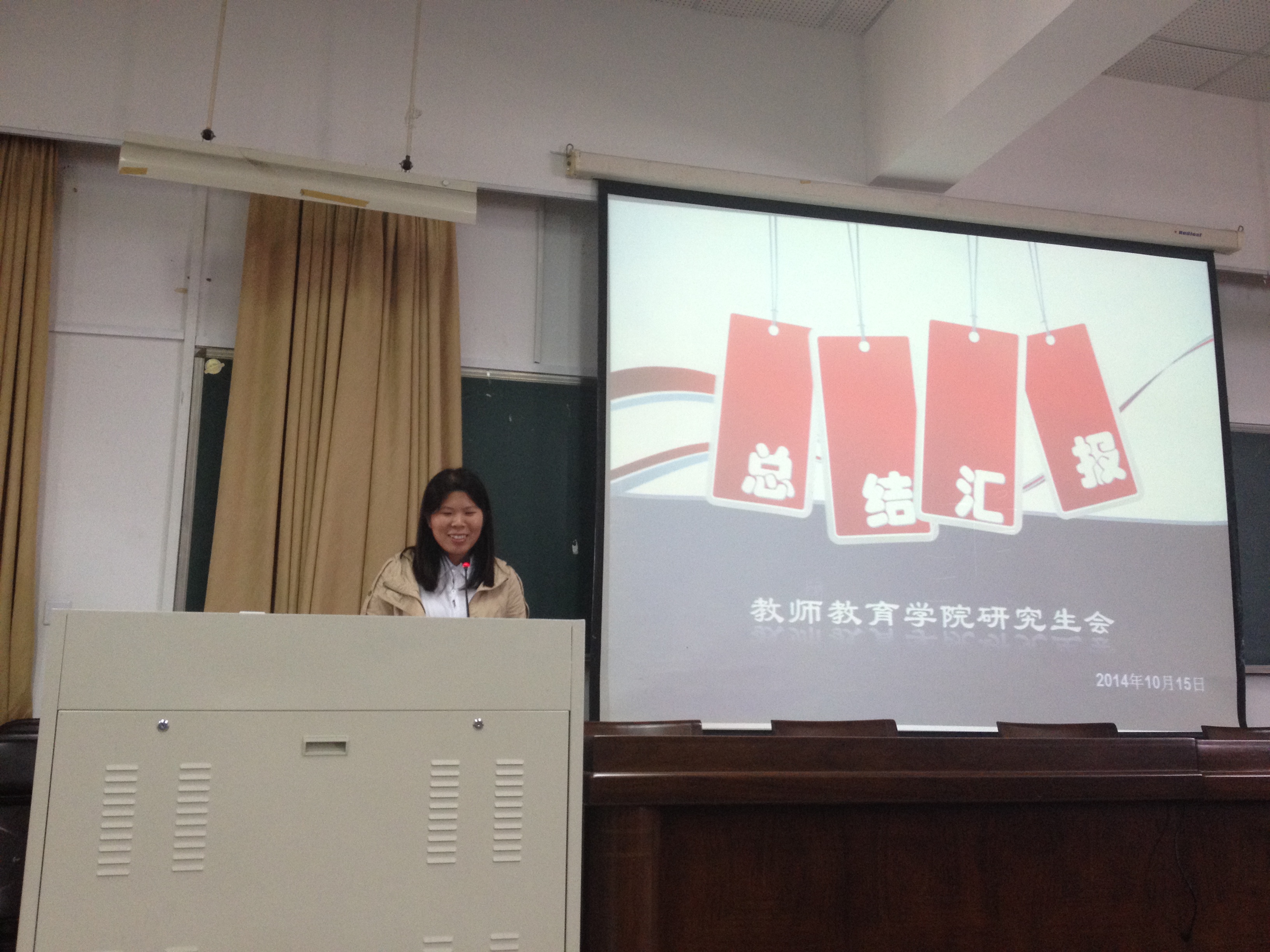 2014年10月15日下午14:00,太阳成集团tyc234cc第五届研究生会换届选举大会在北校区3#101室如期举行。副院长潘玉进老师、教育学系党支部书记周奇老师和辅导员吴冬冬老师以及13、14级所有研究生参加了大会,会议由研究生会主席江仔媛主持。