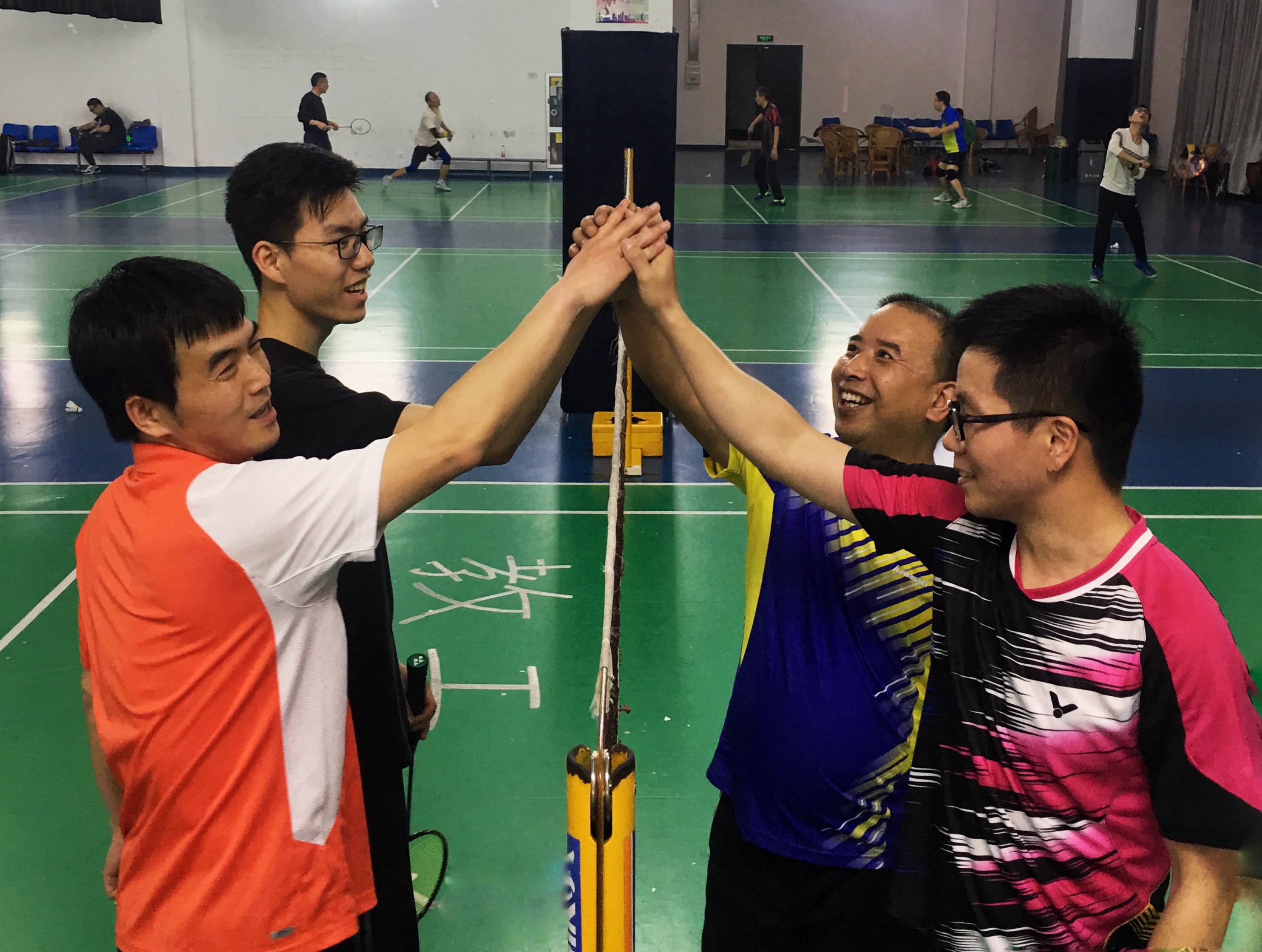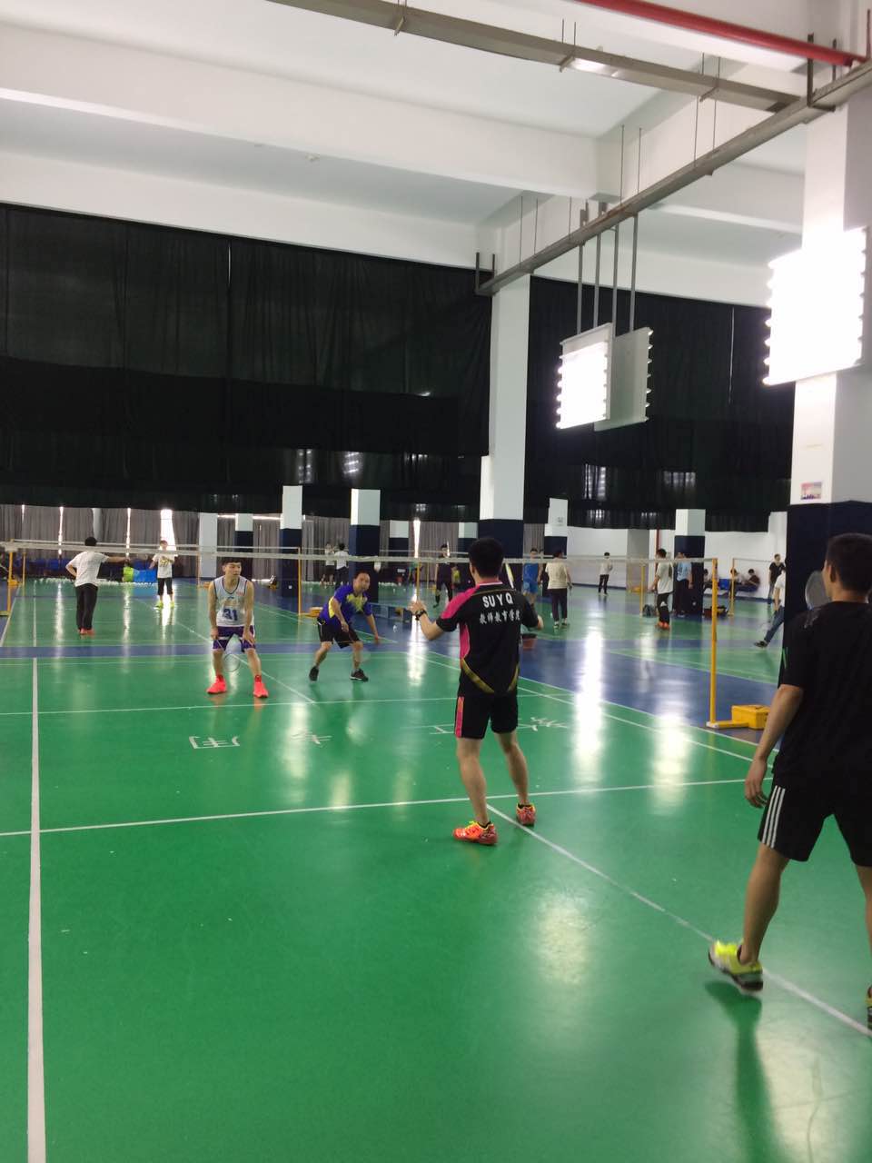 本次比赛吸引了学院众多喜爱羽毛球的老师和同学参加,因此比赛在2个场地同时进行,先进行了男双、男单和混双一共7场师生对抗赛,完了以后还意犹未尽,现场决定再举行几场师生配对的混合双打比赛。虽然秉承着友谊第一,比赛第二的宗旨,但是老师和同学们在一场场紧张激烈的比赛中,却还是充斥着满满的杀气,在刀光剑影中,挥舞着手中的球拍。