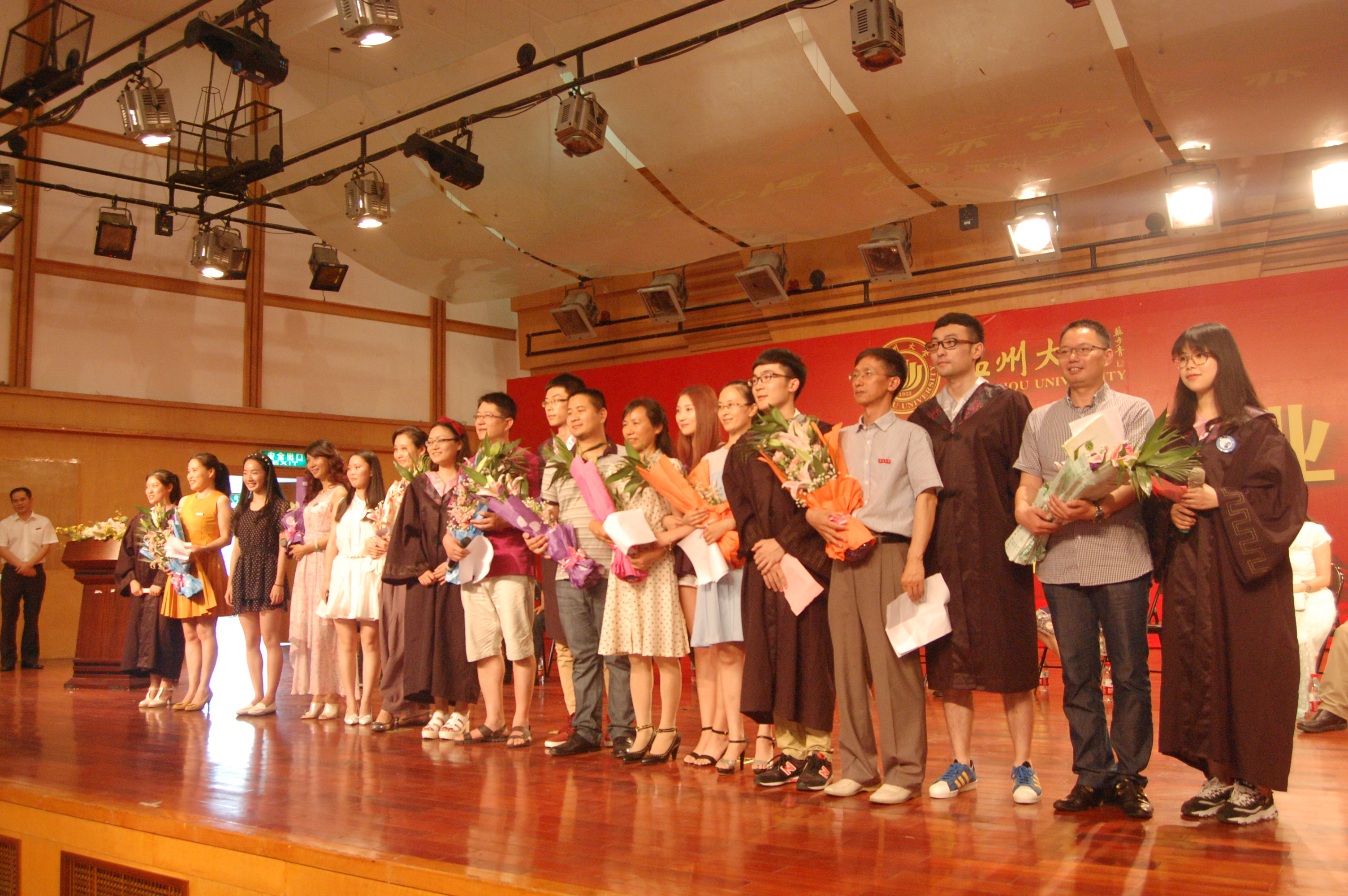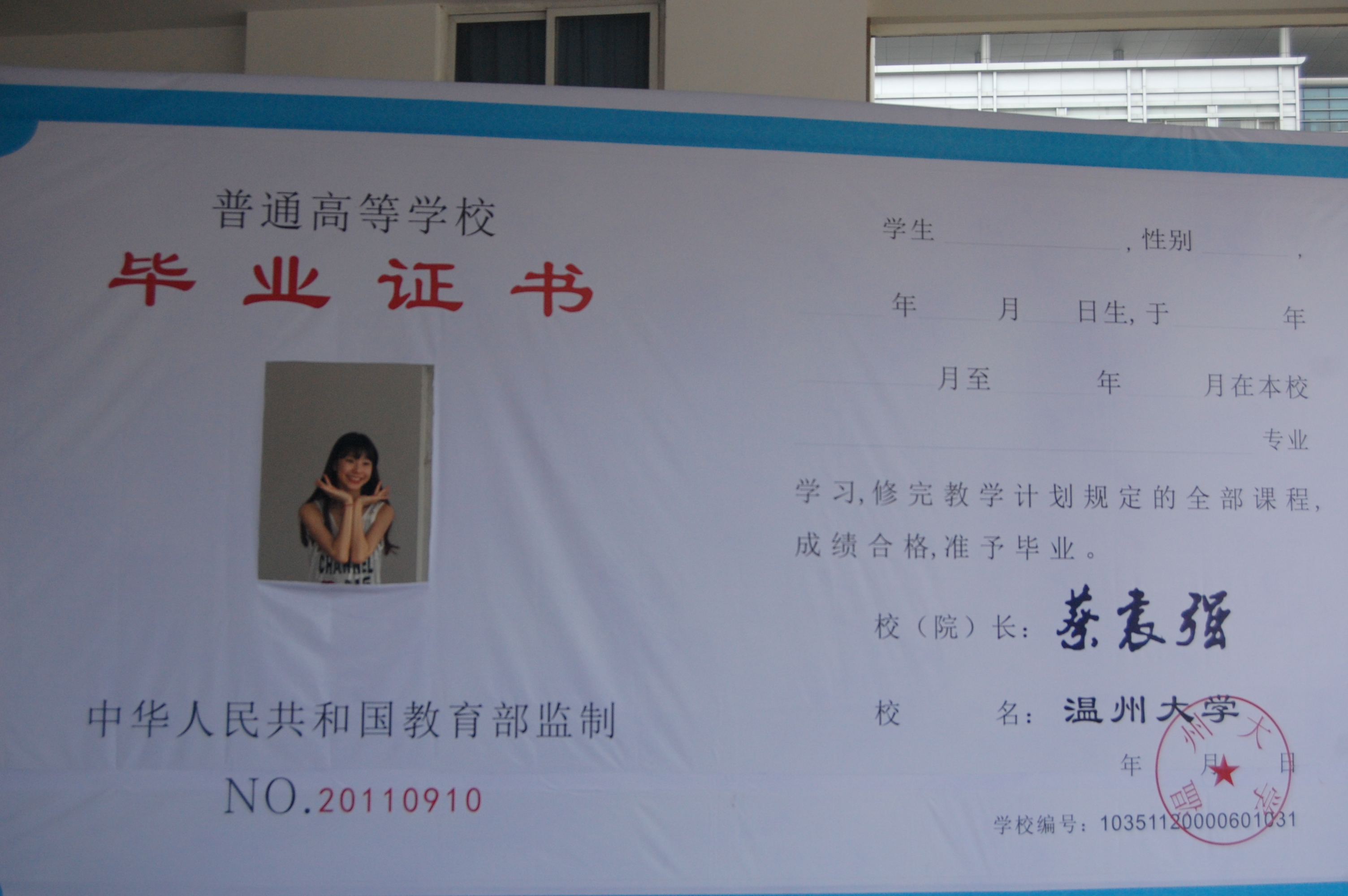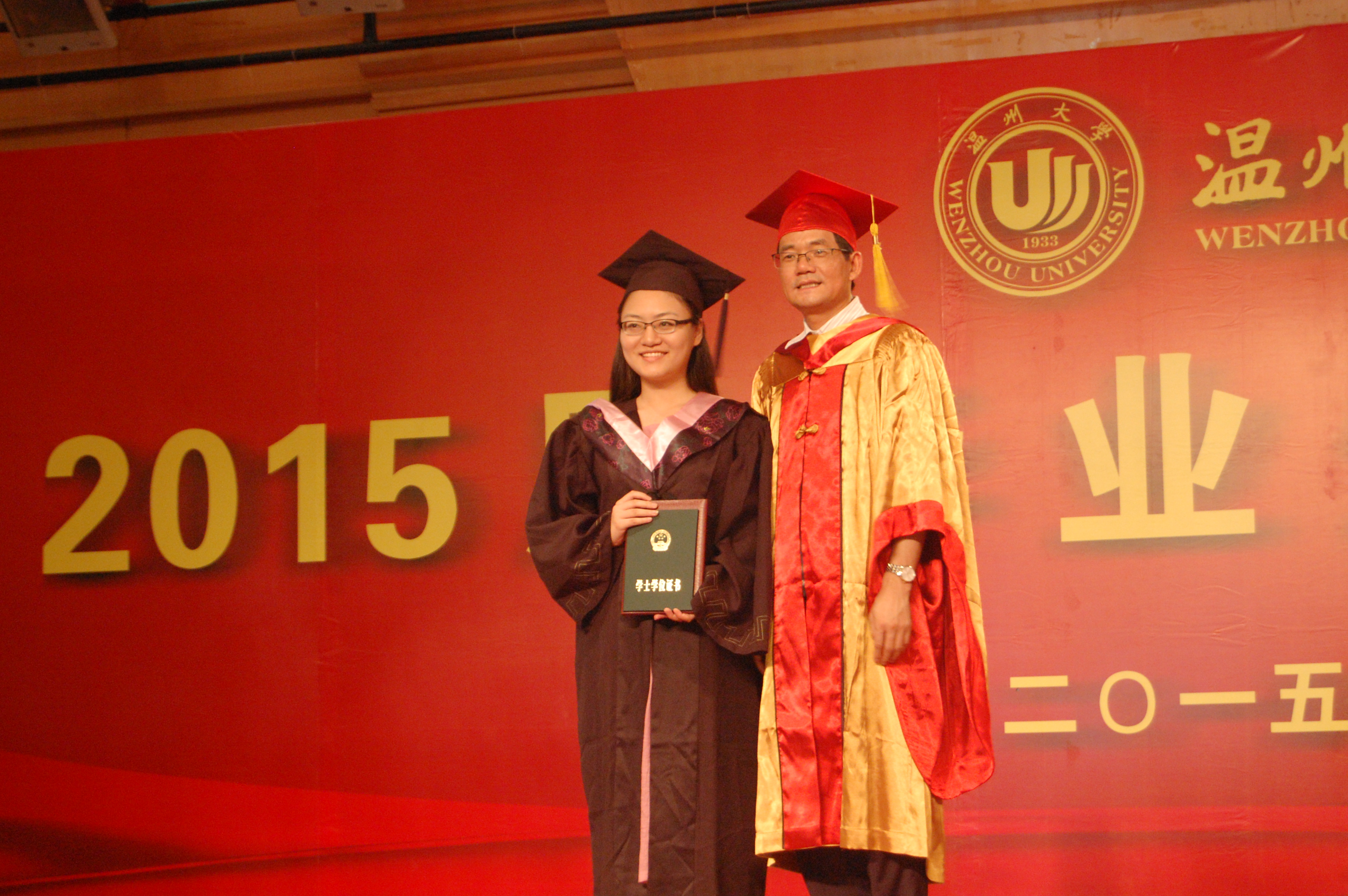 典礼上,蔡袁强校长与每位毕业生深情握手,亲手为395位毕业生正冠拨苏、颁发毕业证书并合影留念,整个会场气氛热烈,整整持续了2个多小时,许多毕业生激动深情地拥抱校长以示喜悦,大家深深感动,一起向着校长深情喊道:“蔡校长,您辛苦了!我们永远爱您,爱母校!”喊出了所有毕业生的爱校心声。