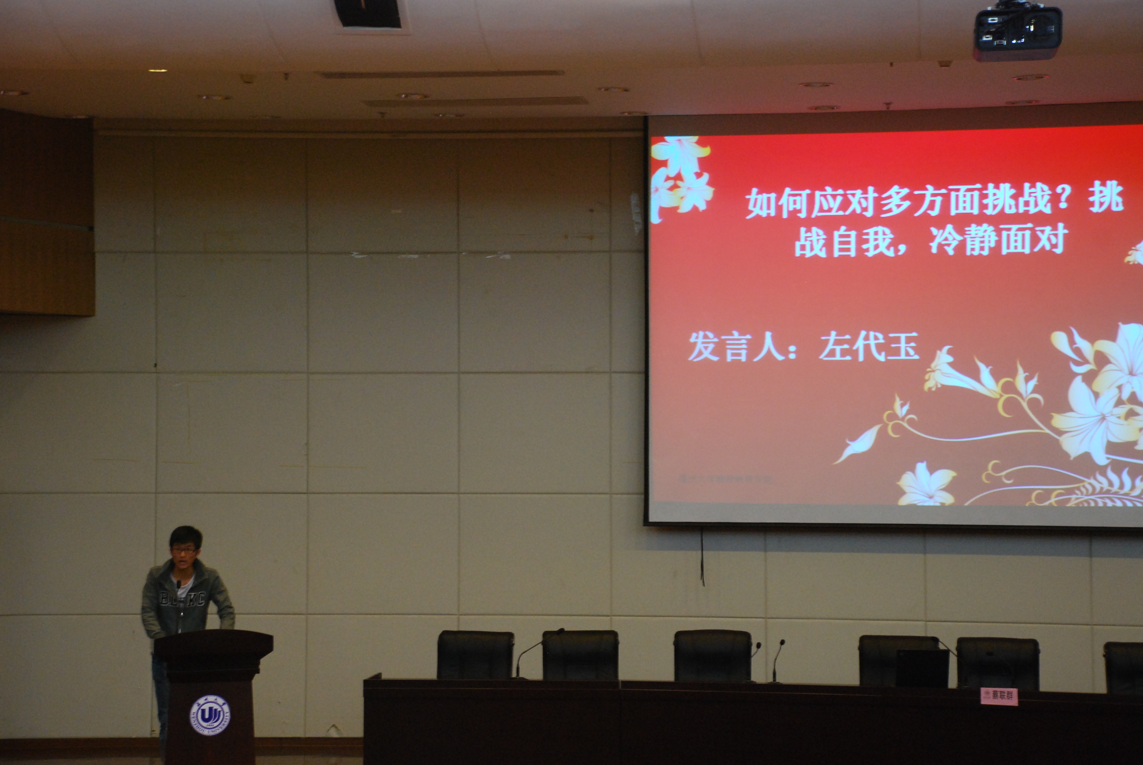 结业典礼共分三议程。第一项议程,本次学生骨干培训班学生辅导员代表黄惠对本次培训作总结汇报。第二项议程,沈丹、蒋宜航、左代玉和桂露颖作为各组学员代表分享小组讨论成果。第三项议程,蔡联群书记为优秀学员颁发证书。