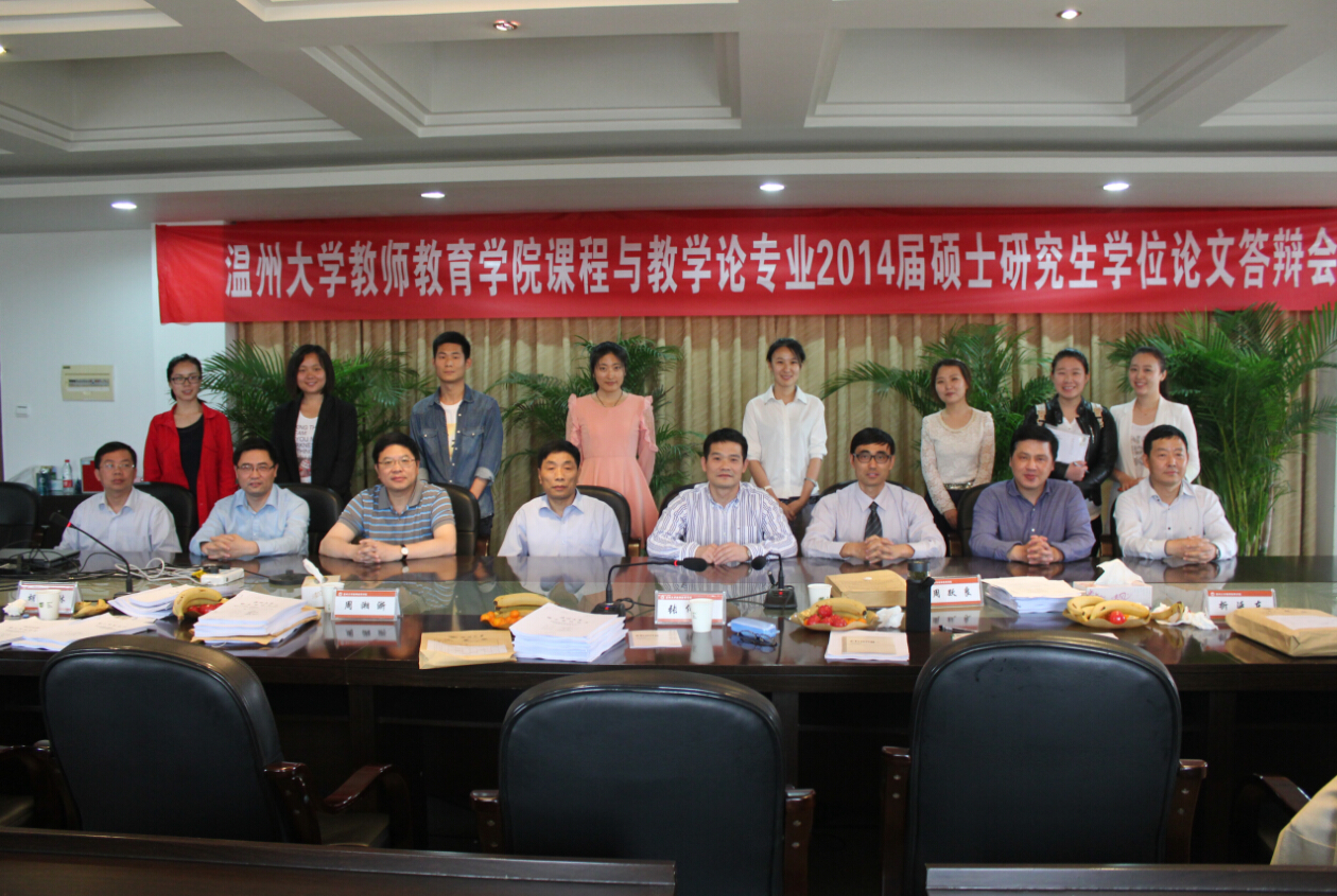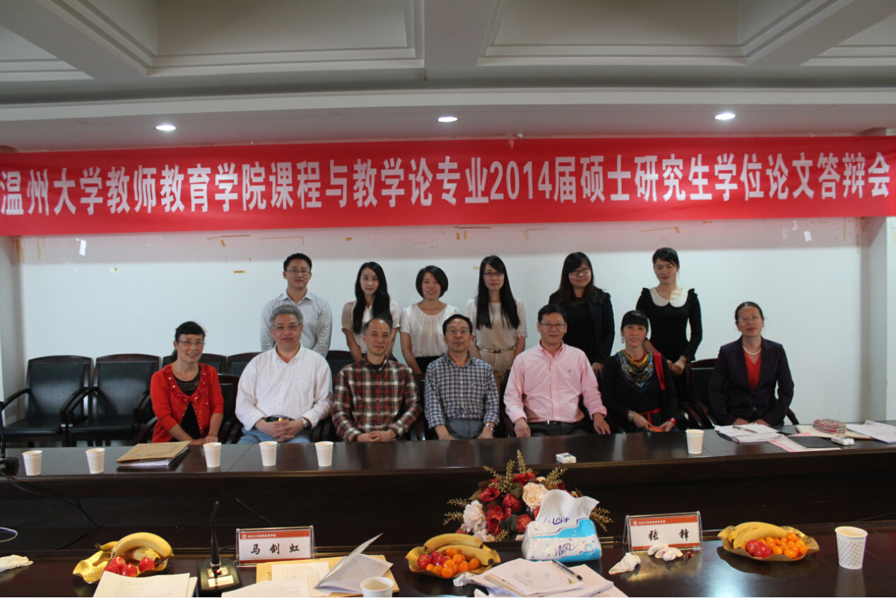 2014年5月18日上午,我院2014届硕士研究生学位论文答辩会在北校区行政楼第一、二楼会议室举行。答辩主席分别由浙江大学马剑虹教授、杭州师范大学张伟平教授担任,答辩委员会成员由浙江师范大学周跃良教授、宁波大学张锋教授、丽水学院周湘浙教授,以及我院郑信军教授、潘玉进教授、徐速教授、陈美芬副教授、胡来林教授、王佑镁教授、折延东教授、黄亨奎副教授、张晓瑜副教授组成,陈秋珠副教授、万荣根副教授分别担任答辩委员会秘书。我院2014届课程与教学论专业14位毕业生参加了答辩,他们分别来自教育心理学、课程论、教学论、学前教育、信息技术教育等方向。12级和13级全体研究生参与旁听。
