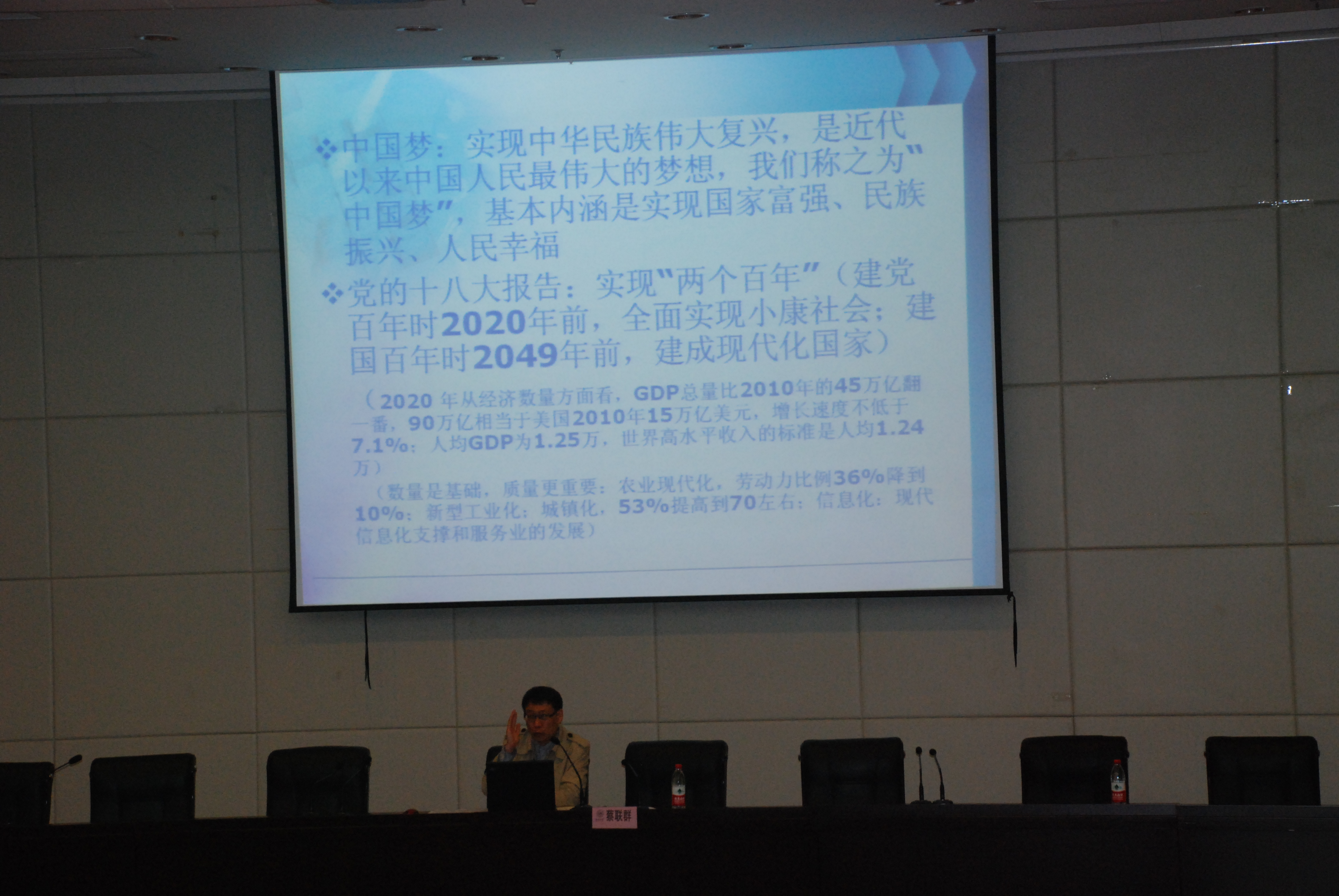 2013年12月12日晚6:30,太阳成集团tyc234cc党总支书记蔡联群老师在南校图书馆育英大礼堂作了题为《凝聚中国梦,传递正能量——十八届三中全会精神学习体会》的精彩报告,辅导员严晓秋老师和全体骨干培训班学员近180人到场参加。