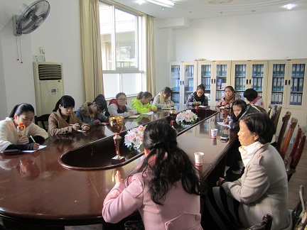 随后,在周副园长的组织下,嵇小怡书记、林炎琴老师、教学科胡孙贵老师以及12名第二节没课的实习同学在机关一幼的会议室进行了座谈。周副园长肯定了我院09学前本实习生肯学、勤劳的良好品质;林炎琴老师鼓励大家可以把实习期间的一些想法说出来。嵇小怡书记代表我院党政领导班子对机关一幼表示了真挚的感谢----谢谢她们这么周到的照顾好我们的实习生;接着,嵇书记把就业的一些相关信息转达给大家,并解答了同学们的一些疑惑,还表示可以第二天再来做一个专题讲座;最后,嵇书记针对一些学前编制招考中的时间问题、学生生源问题、学生层次问题和机关一幼周副园长做了交流,希望用人单位也向主管部门多提提意见,从而消除学生就业的地区不平衡问题;最后,嵇书记也要求自行安排住宿的实习生注意安全。教学科胡孙贵老师就毕业论文开题及答辩时间问题做了说明。