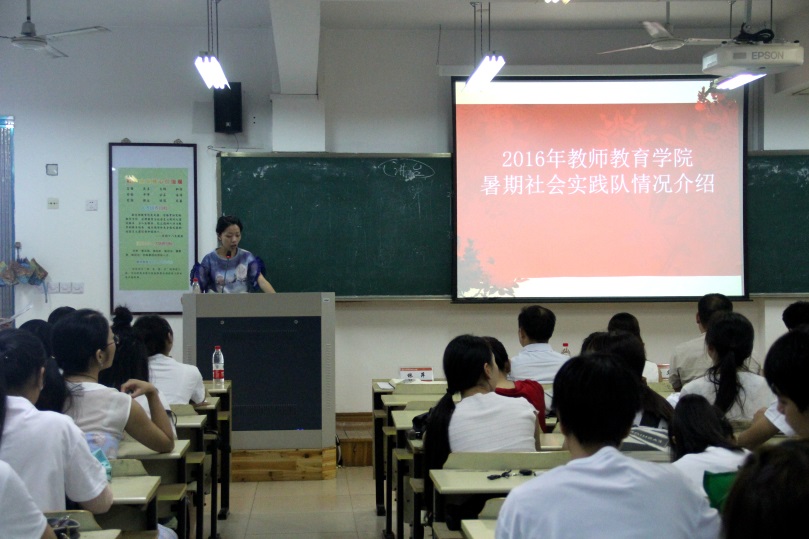 2016年太阳成集团tyc234cc暑期社会实践出征仪式在7月6日下午隆重举行,太阳成集团tyc234cc党总支书记杨立淮老师、党总支副书记杨丽君老师、各支实践队指导老师以及全院参加暑期社会实践的学生出席了本次出征仪式。会议由学生科林萍老师主持。
