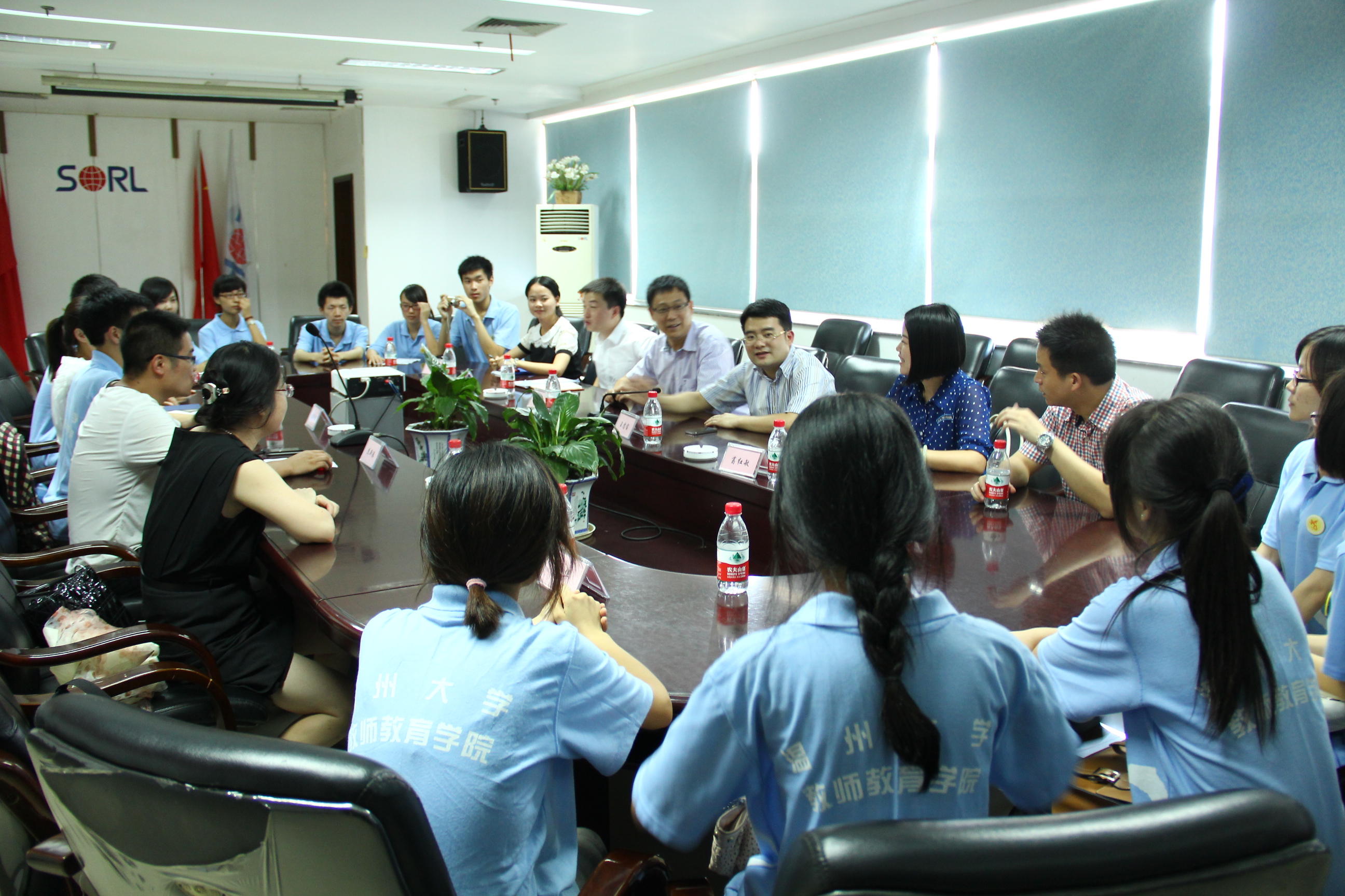 7月19日下午,温州市团市委书记王忠宝、太阳集团tyc234cc校团委副书记熊琳、太阳成集团tyc234cc党总支书记蔡联群、党总支副书记嵇小怡等领导与其他老师一行莅临太阳成集团tyc234cc“知心姐姐”实践点--瑞安瑞立集团,亲切慰问“知心姐姐”暑期社会实践队。