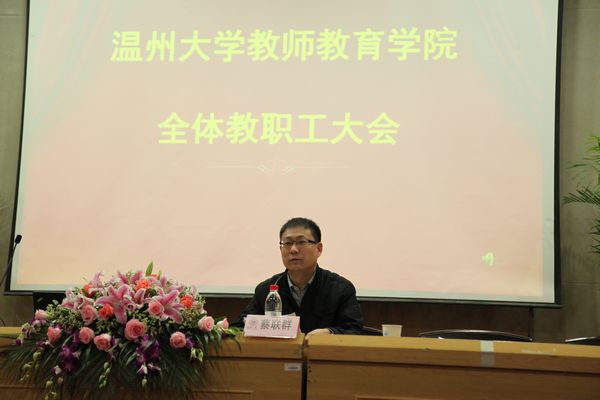 孙芙蓉副院长就教学工作做了专题报告。她在报告中提到,学院人才培养质量年工作进展顺利:在专业建设与人才培养模式改革工作中,为进一步加强学院专业建设和有效整合校外优秀师资参与专业建设,学院专门出台了《兼职专业负责人管理制度》,教育技术及小学教育专业成功申报了校555专业,学前教育专业预备冲击温州市重点专业;在教学基础建设与教学管理工作中,学院多次召开教学专题会议,开展课堂教学研讨,深化与改革教学经费项目化管理,建设实践教学管理平台;在教学惠生专项工作中,强调“惠生培优”和“联动培优”理念,通过完善实验室预约制度、大力建设学生“专业工作坊”、发动研究所与学生调查队结对等多项举措,有效促进了人才培养质量。孙院长还做了期中教学检查工作总结,并布置了下阶段的工作。