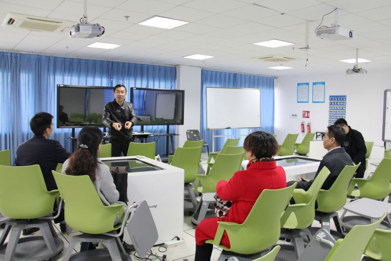 陈柏华副院长一行主要参观了虚拟仿真实验室、未来教室、书法实验室。在VR实验室,老师们听完陈宥辛博士对虚拟实验室基本情况的介绍后,戴上头盔亲身体验了虚拟恐高场景带来的独特感受;在未来教室,老师们认真听取了李小志老师对未来课堂的教育理念、教学模式、发展展望的介绍……参观结束后,双方就虚拟仿真实验室建设、实践教学等方面进行了深入的交流。(摄影:叶爱敏)