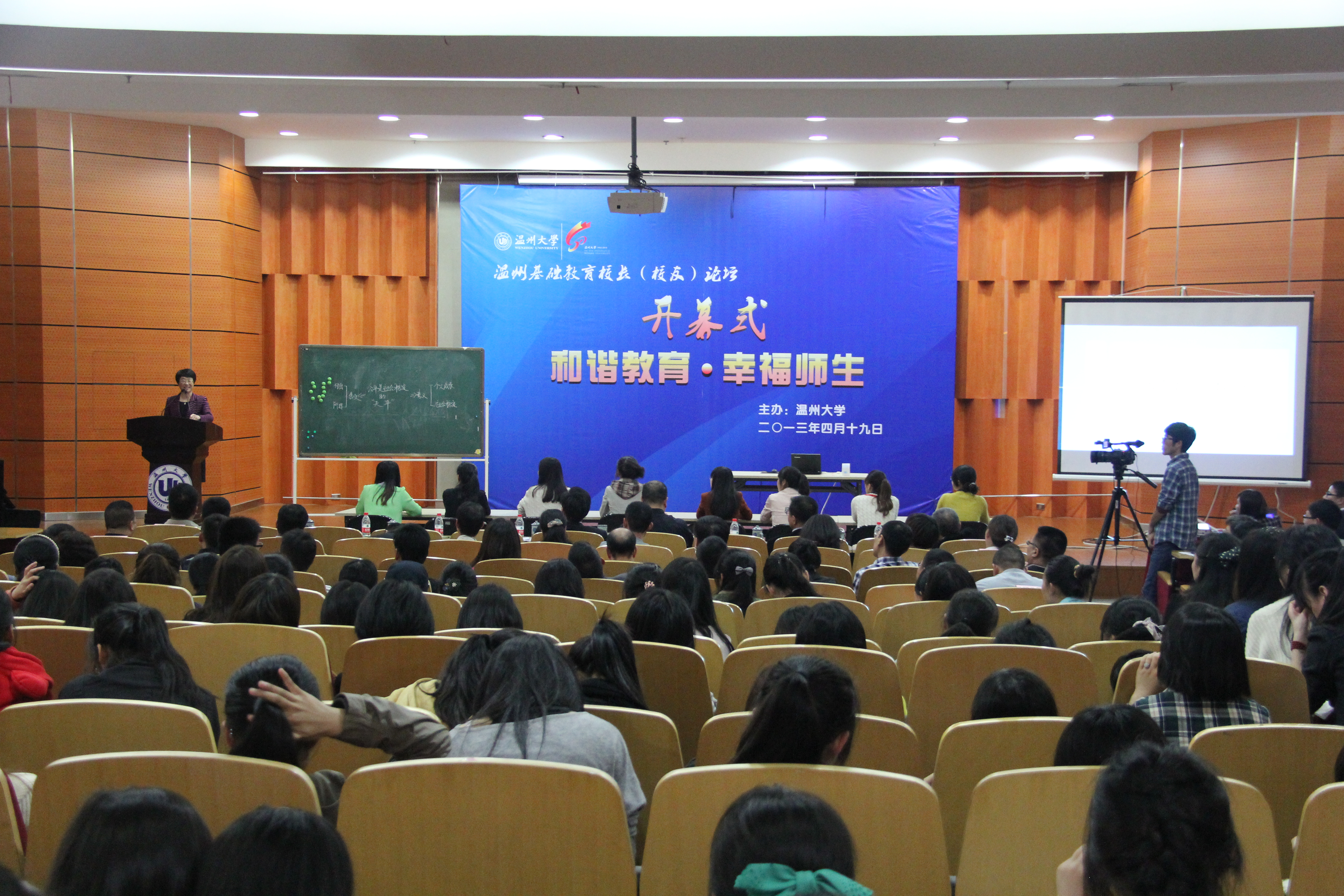 4月19日下午,由我院承办的校80周年校庆系列活动之温州基础教育校长(校友)论坛开幕式在南校区雁山厅隆重举行。校长蔡袁强、温州市教育局副局长张志宏、温州地区基础教育现任校友校长、园长代表80人及我院师生代表参加了本次论坛。论坛开幕式由校党委副书记林娟娟主持。
