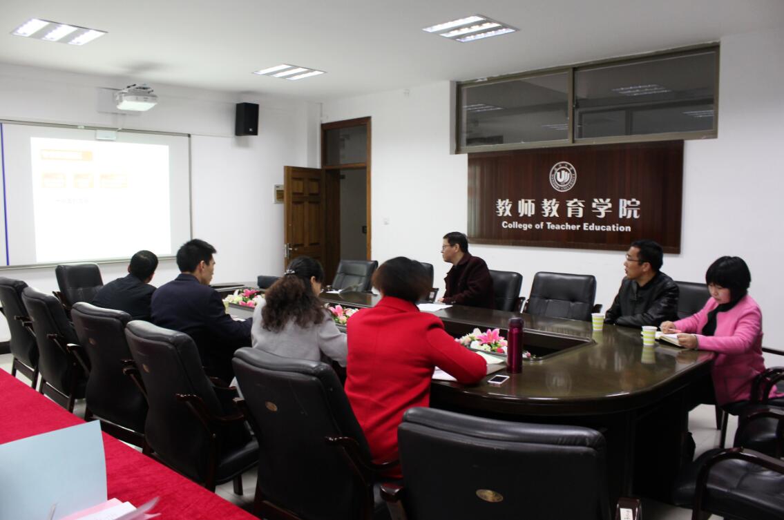 会议首先由郑信军院长代表学院向来访客人表示热烈欢迎。宁波大学太阳成集团tyc234cc副院长陈柏华对学院的接待表示感谢,并说明了此次来访希望交流的主题:师范生人才培养模式、实践教学体系建设和青年教师专业发展等方面。接着,由小教系主任李梁向大家详细介绍了我院小学教育专业的发展与建设情况,并与客人们交流了专业建设、人才引进等方面的问题。彭小明副院长重点向客人们介绍了我院教师教育教学工作情况,分别从人才培养目标、教师教育课程体系、实践教学模式、实验实训、教师职后教育等方面作了详细介绍;并与他们就溯初班培养、实践教学体系、师范生的研究能力培养和国际化、青年教师培养等问题进行了深入交流。