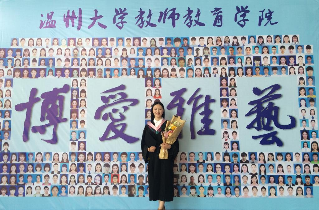 学院别出心裁地在雁山厅门口放置了巨幅的毕业生照片汇集喷绘,烘托出了“博爱雅艺”四个大字。另外一张“三尺讲台勤磨练 一只粉笔写未来”的黑板图案照片,引得同学老师们纷纷合影,定格毕业的美好瞬间。