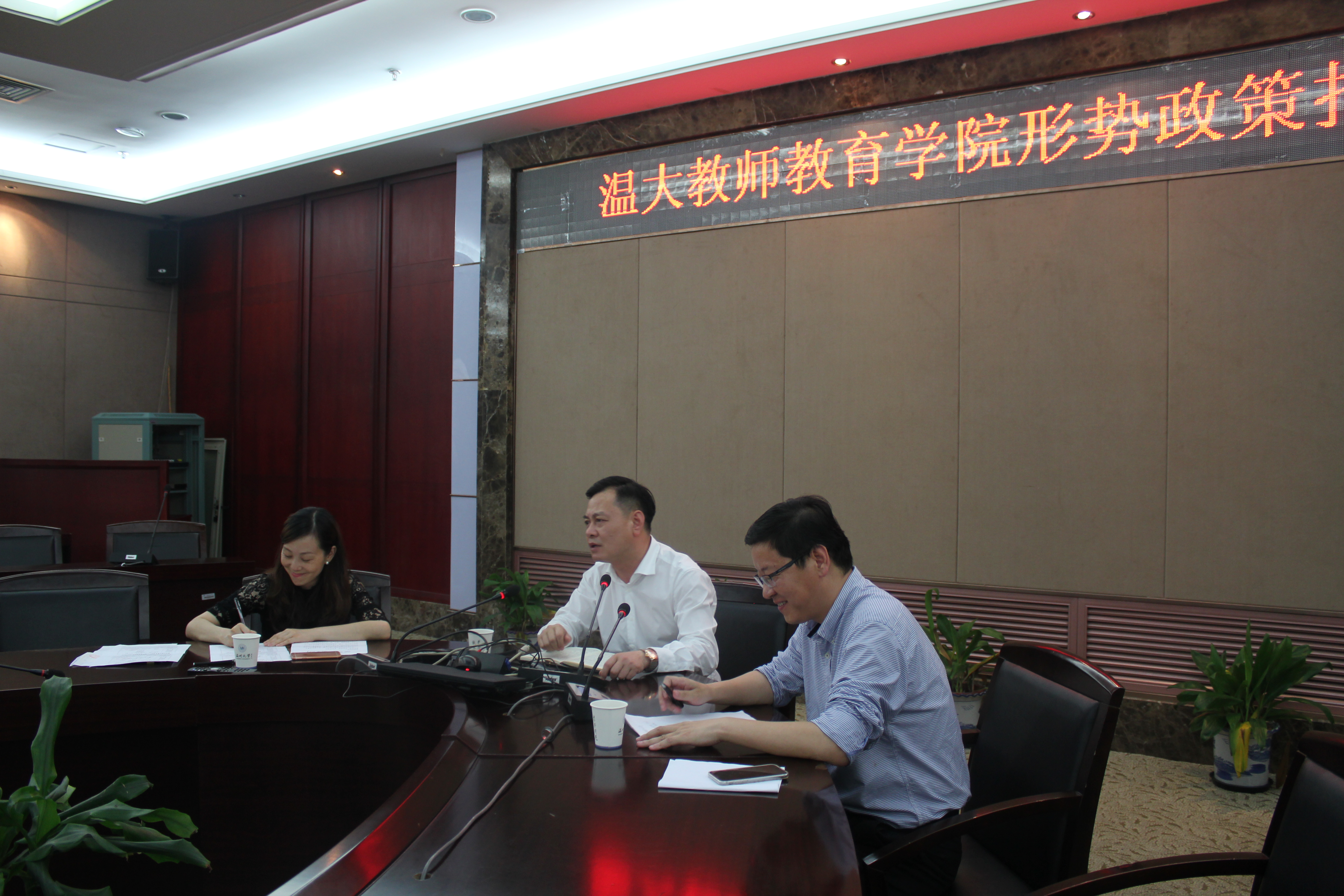 为全面贯彻落实校党委“学党章党规、学系列讲话,做合格党员”学习教育动员会议精神,5月25日下午,学院党总支在南校区岩松堂白鹿厅召开“两学一做”学习教育动员会暨形势政策报告会,全体教师党员和研究生党员近60人参加会议。会议由学院院长兼党总支副书记郑信军同志主持。