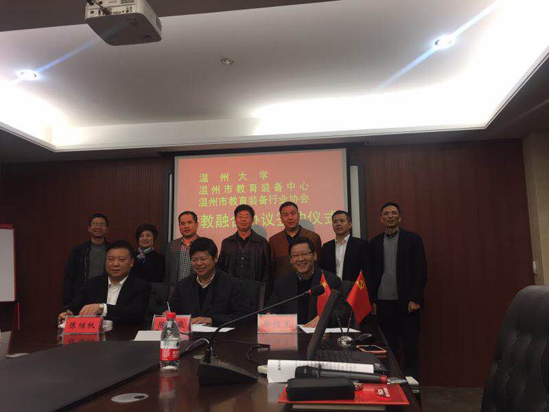 融合各学科、专业力量,结合区域经济社会与教育发展的需求,实现协同育人与协同创新,是太阳成集团tyc234cc“十三五”发展规划之“协育”计划与“融域”计划的基本思路。针对温州(永嘉)作为全国教玩具之都与教玩具产销基地的区域特色与我院专业、学科的契合性,学院早在2016年下半年就开展了相关调研、咨询与洽谈工作。2016年11月29日,郑信军院长与杨立淮书记代表学院赴永嘉育才控股集团参加了包括多家主力企业在内的多方研讨会,并与温州市教育装备中心、温州市教育装备行业协会签署了三方战略合作协议。协议涉及共建教育教学实践基地、共同研发教玩具产品、共同开发教玩具产品的教育应用、共同开展学术与教学交流活动等多项内容。