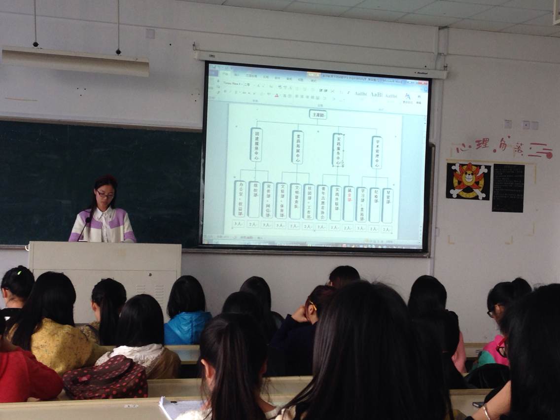 2014年4月23日中午12:40,太阳成集团tyc234cc团委学生会于三号楼302教室召开了全体干事会议,学习有关学生会的中心制改革问题。学生会指导老师陈秀雅和严晓秋在百忙之中出席了本次会议。