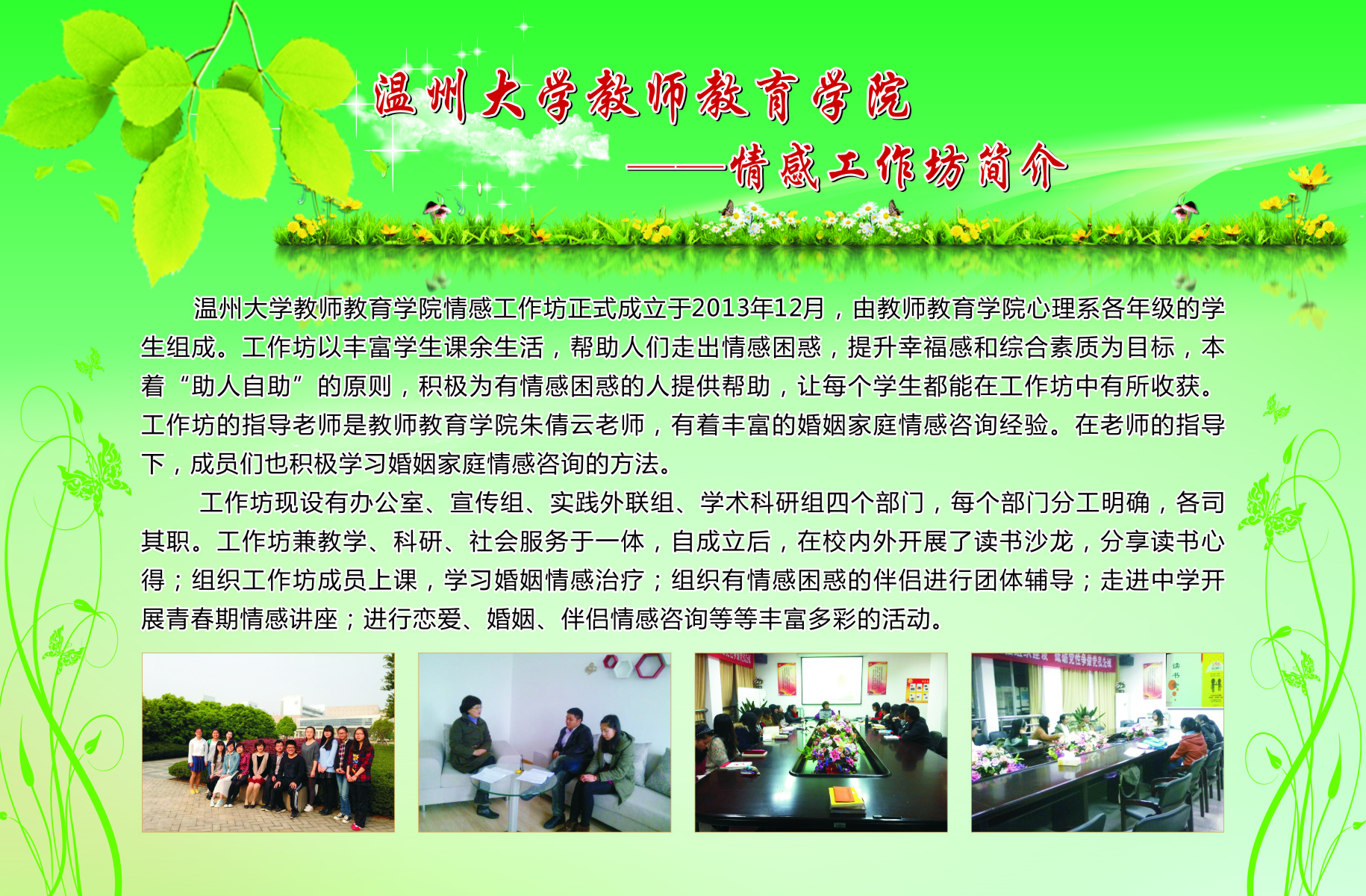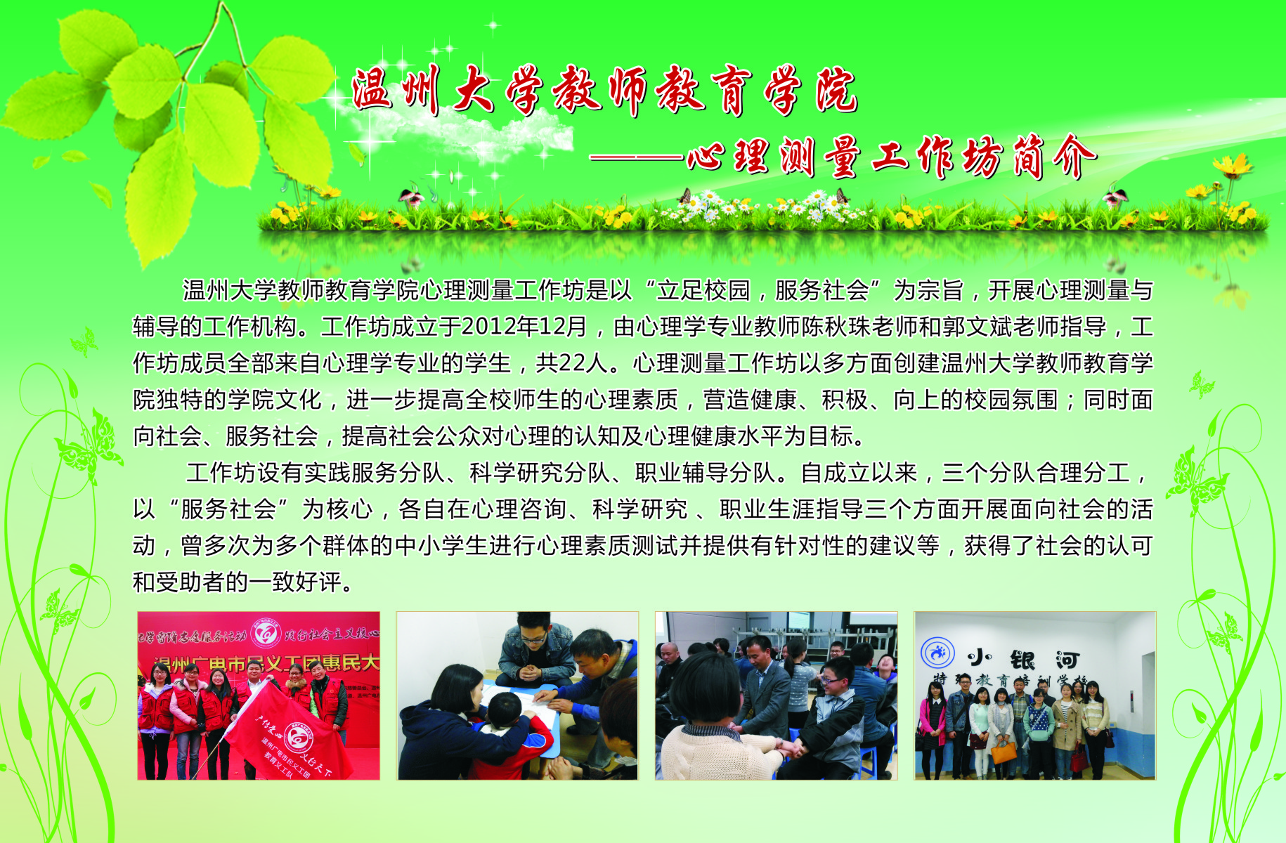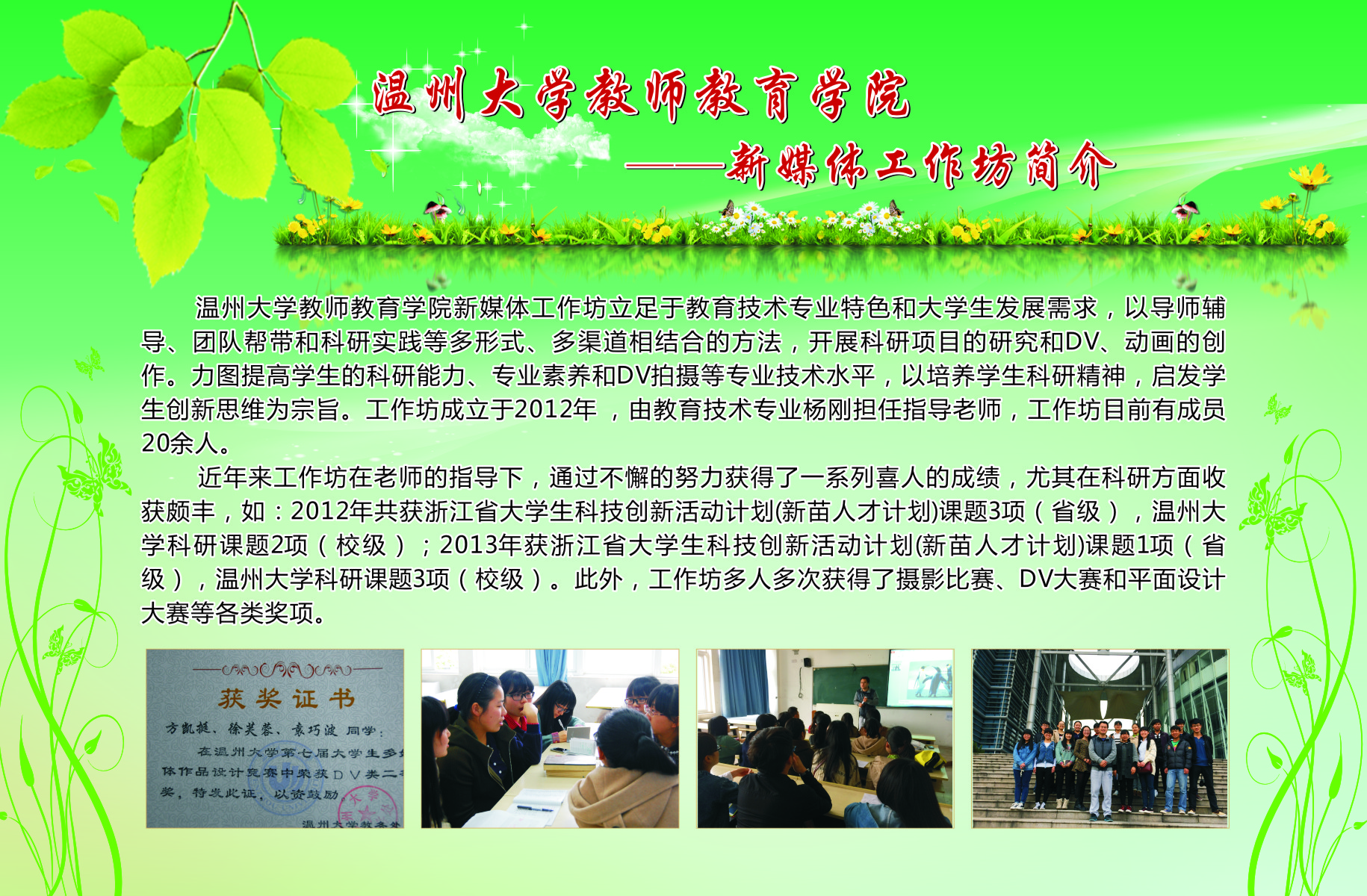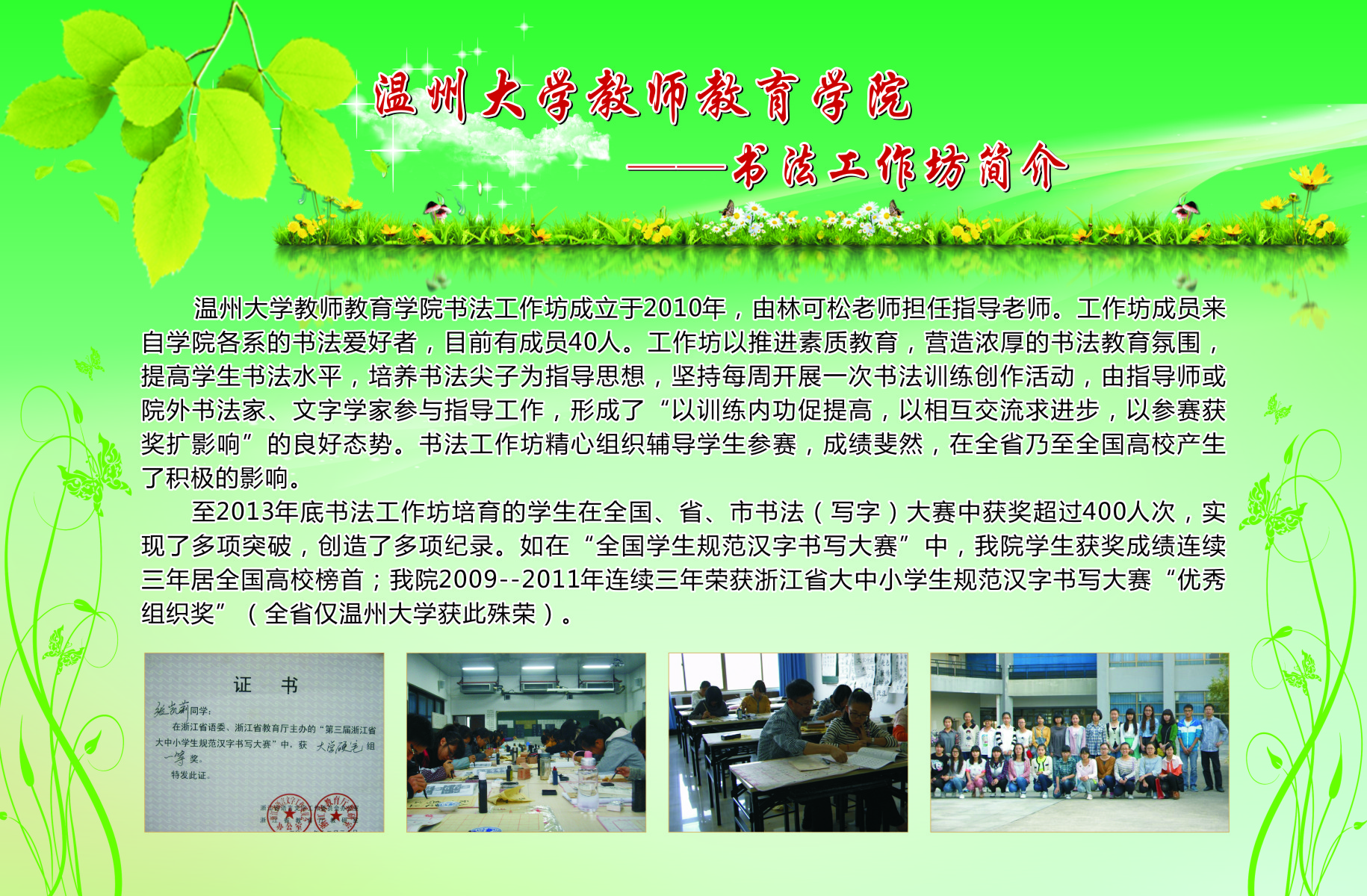 近些年,太阳成集团tyc234cc学生工作以培育学生“博、爱、雅、艺”师范气质,深化学院优良学风建设,提升学院服务地方的能力为宗旨,创办了一系列的学生专业工作坊。从09年开创至今,学院工作坊数量逐渐扩大,目前已拥有语言工作坊、儿童剧剧社、书法工作坊、合唱工作坊、新媒体工作坊、软件工作室、摄影摄像工作室、表演唱工作坊、心理测量工作坊、美术工作坊、舞蹈工作坊、文学创编工作坊、情感工作坊等13个学生专业工作坊。为进一步推进我院学风建设,发挥先进典型的示范作用,展示我院师生在“博、爱、雅、艺”方面的精神风貌,我院特举办此次学生专业工作坊宣传展。