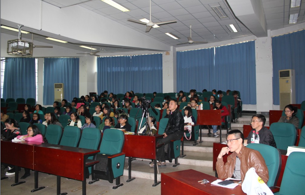 11月21日下午,我院心理系特邀浙江省苍南县教育科学研究所副所长、中学心理健康教育高级教师、温州市名师林甲针老师为心理系学生开设讲座。林老师的讲座以“从教育到辅导---心理健康教育视野下的学生工作”为主题,带领11级和13级应用心理学专业全体同学在他的心理健康教育路上走了一回,领略了心理健康教育的魅力。此次讲座由盛建森老师主持,他强调本次讲座旨在让13级应心同学产生感性认识和情感体验,尽快适应专业学习,并明确个人发展规划,同时让11级应心同学也能对心理健康教育工作有更加深入的理解。
