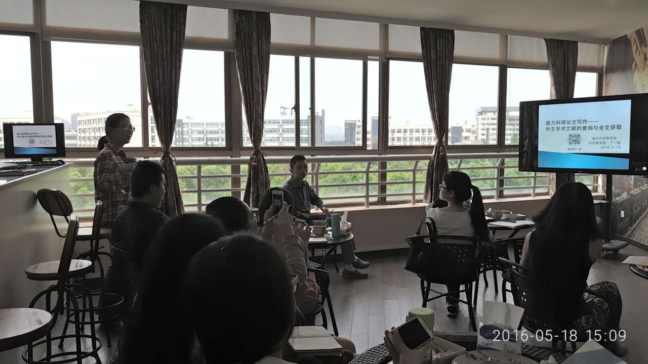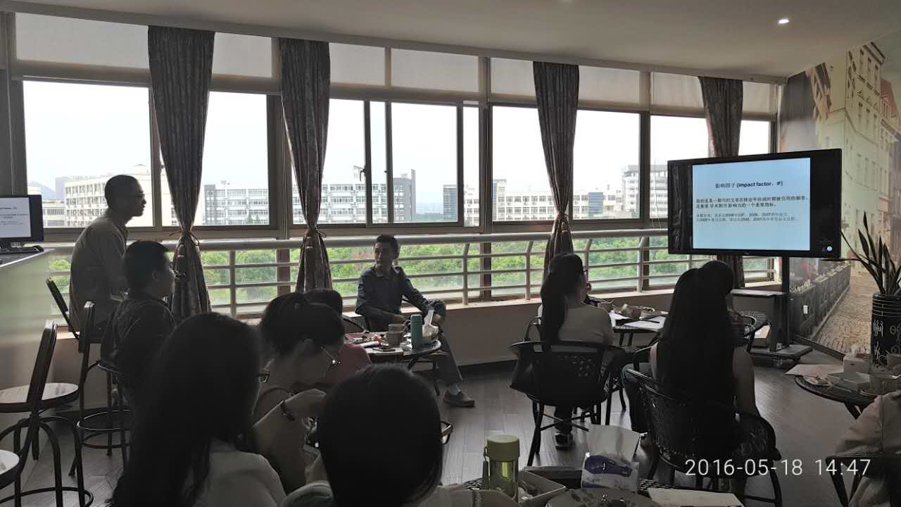 2016年5月18日下午,由太阳成集团tyc234cc主办、太阳集团tyc234cc课程与教学论研究所、太阳集团tyc234cc博士联谊会教院分会承办的“教苑”读书会(2016年第5场)在南校区太阳成集团tyc234cc9号楼四楼十亩之间举行。本次读书会由章勤琼老师主持,丁一敏、金建钰、廖传景老师为特邀嘉宾。章老师、金老师、廖老师均以自己投稿SSCI期刊的切身经验与大家分享如何有效投稿以及投稿注意事项。图书馆丁老师则主要从如何有效检索外文期刊和文献方面给参会师生建议。