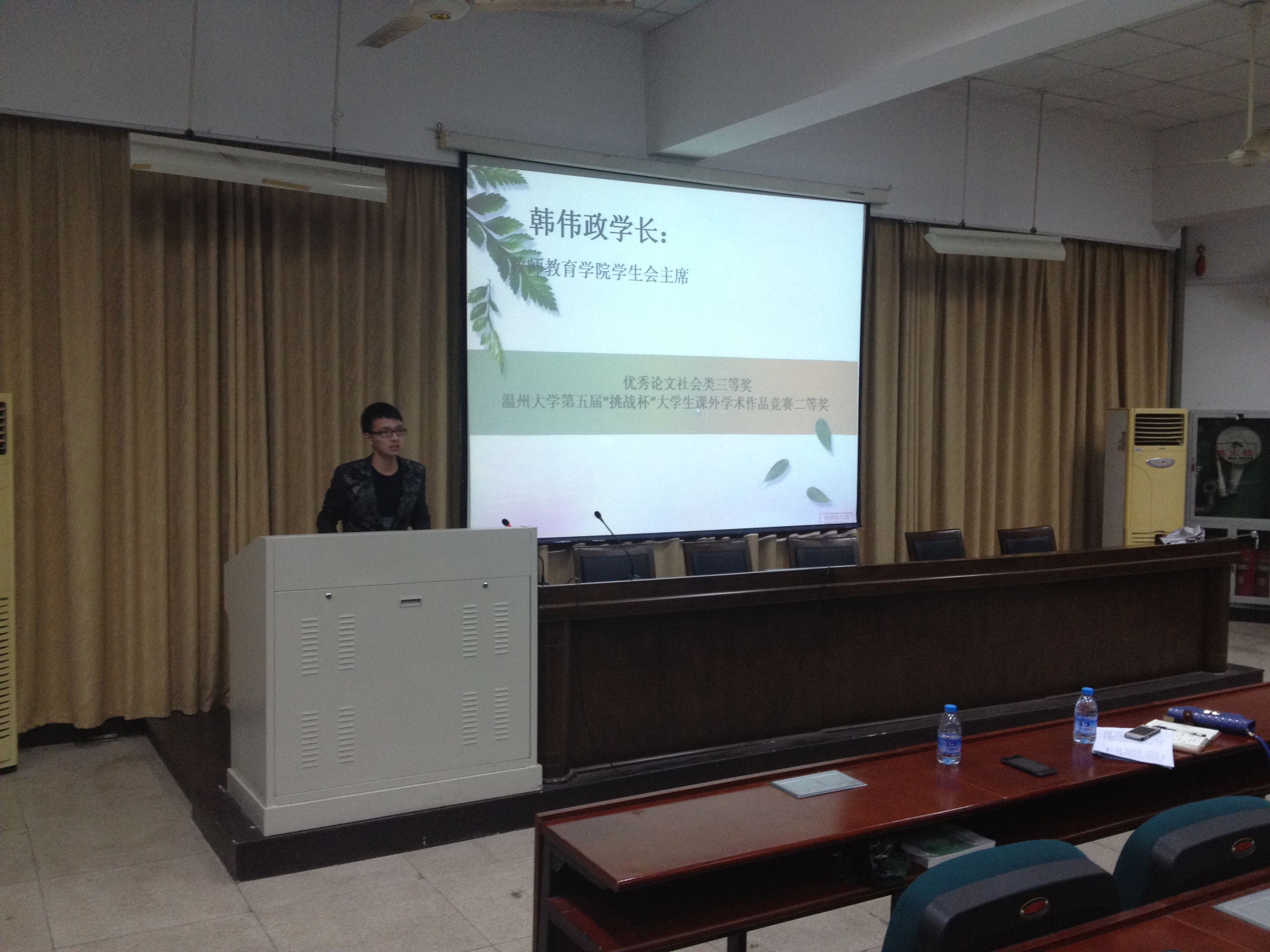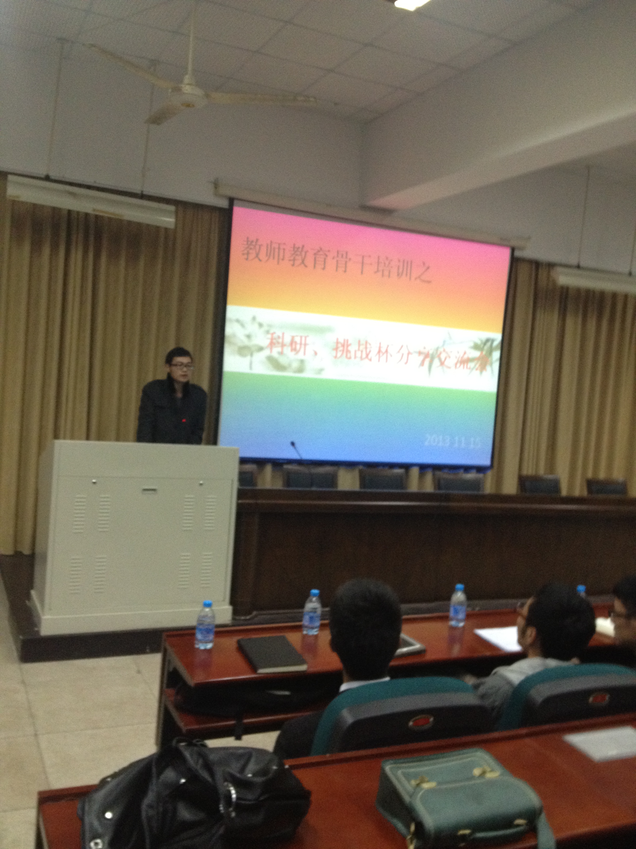 11月15日星期五晚6:30分,在太阳集团tyc234cc北校三号楼101会场举行了一场教师教育骨干培训系列的交流会——科研、“挑战杯”分享交流会。法政学院的张翼鹏学长、我院的高崚峰学长、韩伟政学长、严晓秋老师与培训班学员和各班的科研爱好者们开展了深入交流。