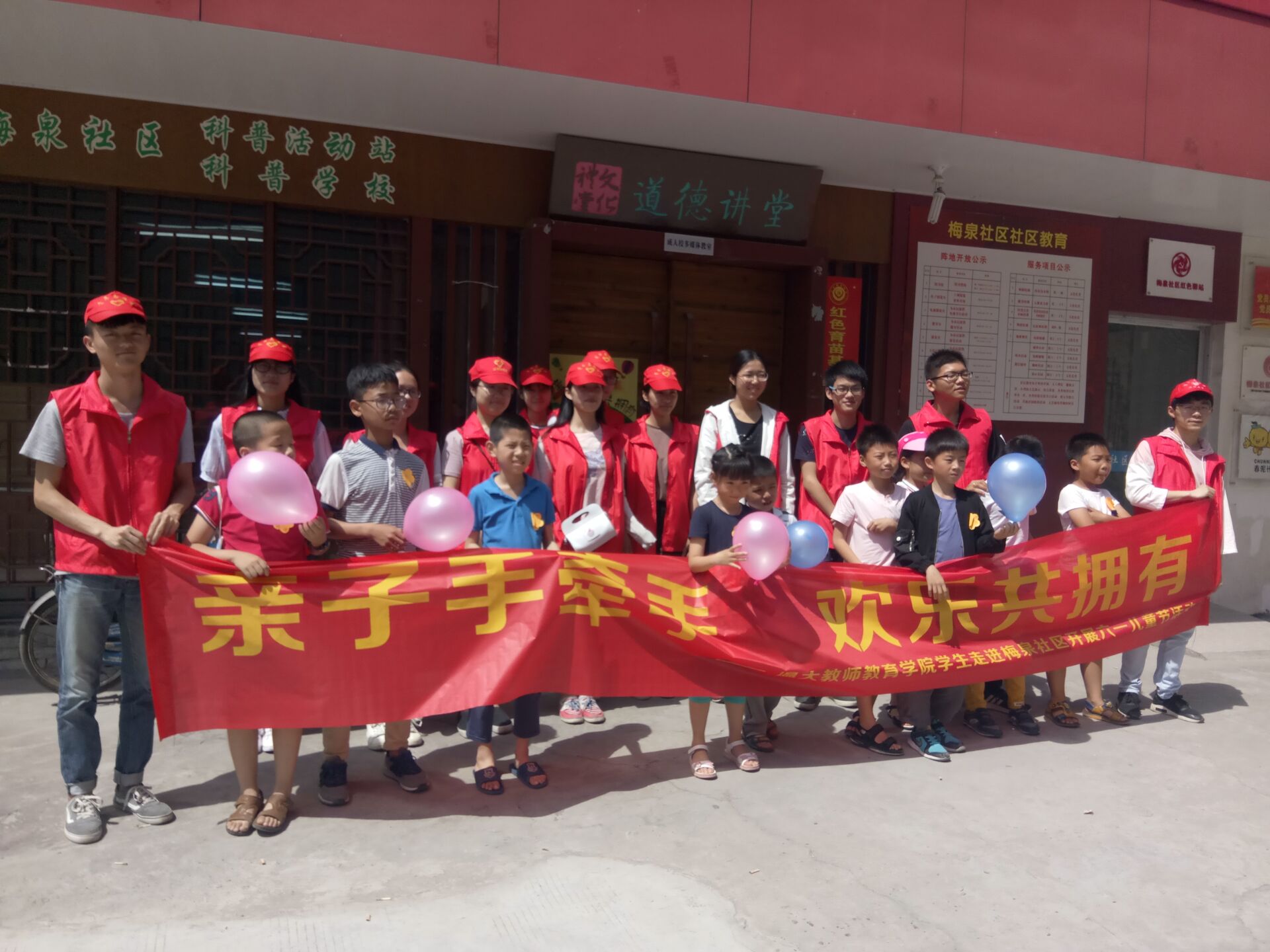 2017年5月28日上午,我们太阳成集团tyc234cc青年志愿者协会的小伙伴以及10名志愿者在梅泉社区开展了六一亲子活动。本次活动的主题是:“亲子手牵手 欢乐共拥有”,旨在通过孩子与父母的互动来加强与父母的感情。