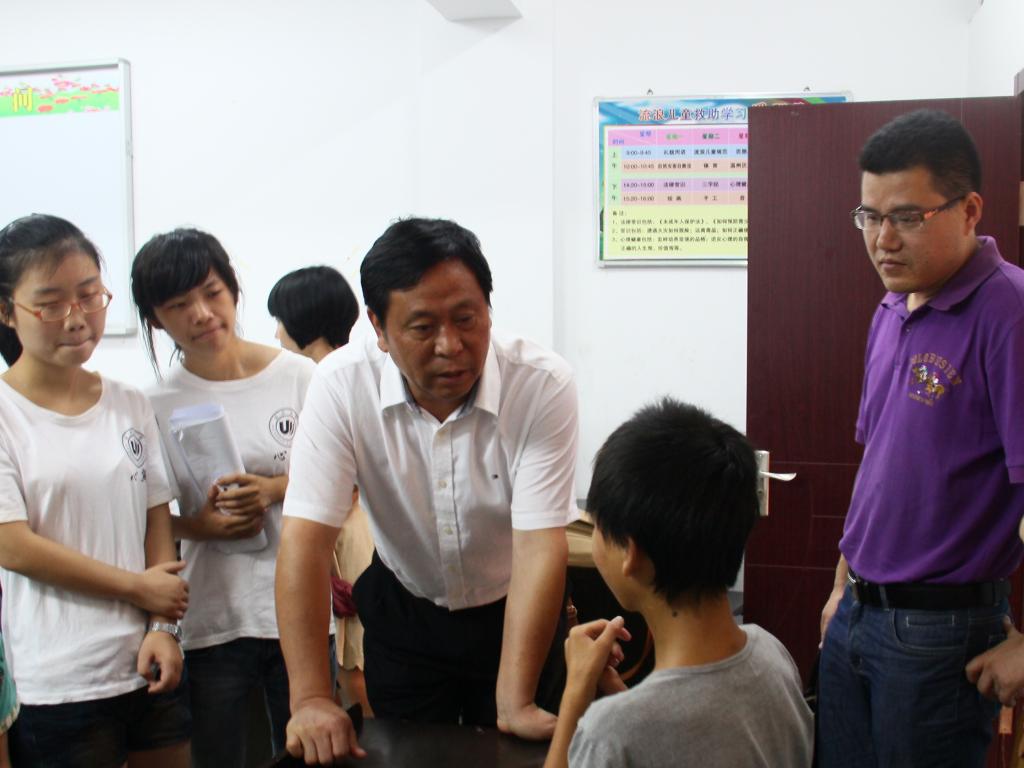 2013年7月15日,太阳集团tyc234cc“心翼”暑期实践队来到温州市救助站开始第九天的支教活动。9时许,太阳集团tyc234cc党委书记陈福生,校团委书记杨立淮,太阳成集团tyc234cc党总支书记蔡联群等领导与其他老师一行莅临太阳成集团tyc234cc“心翼”实践点——温州市救助管理站,亲切慰问“心翼”暑期社会实践队。