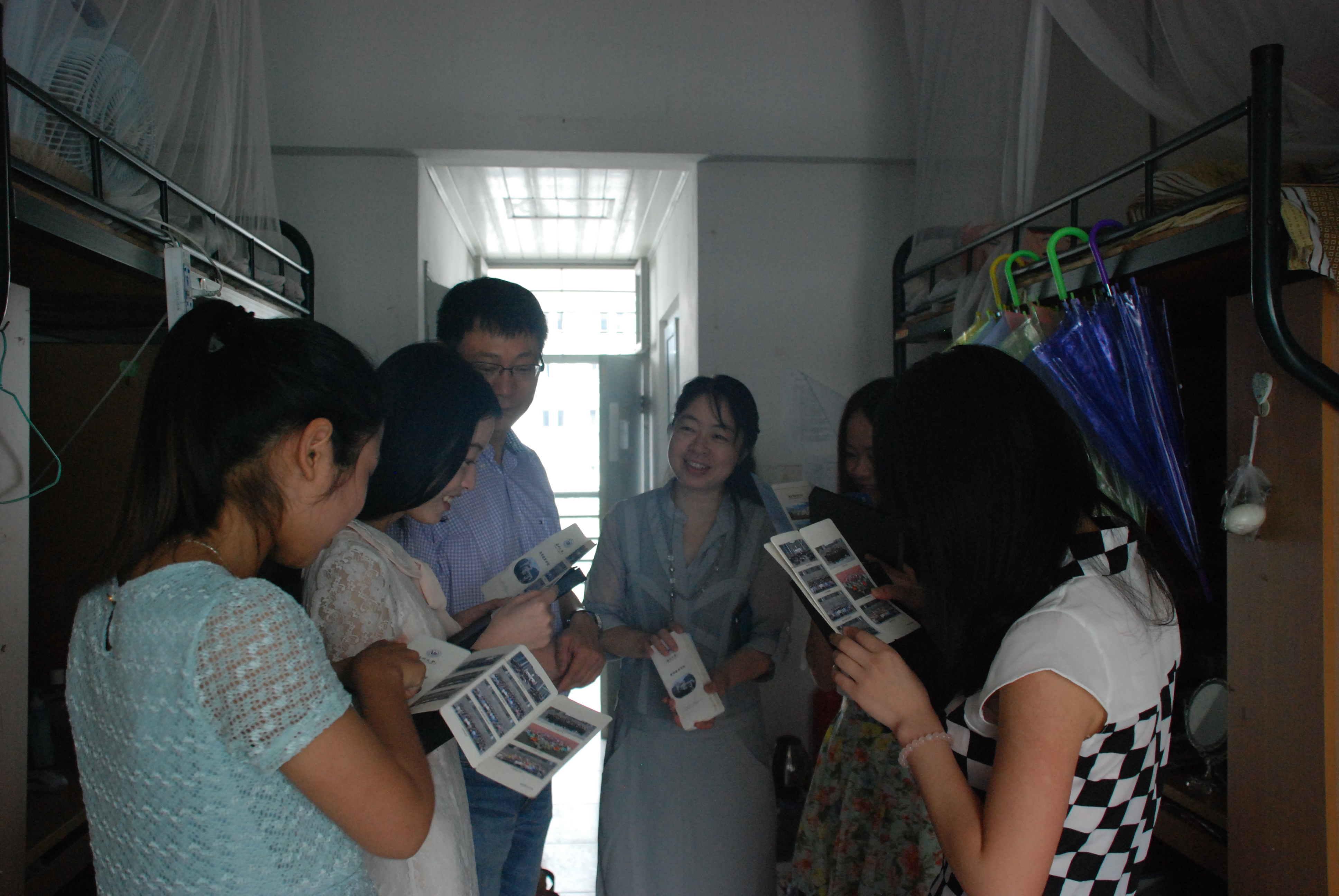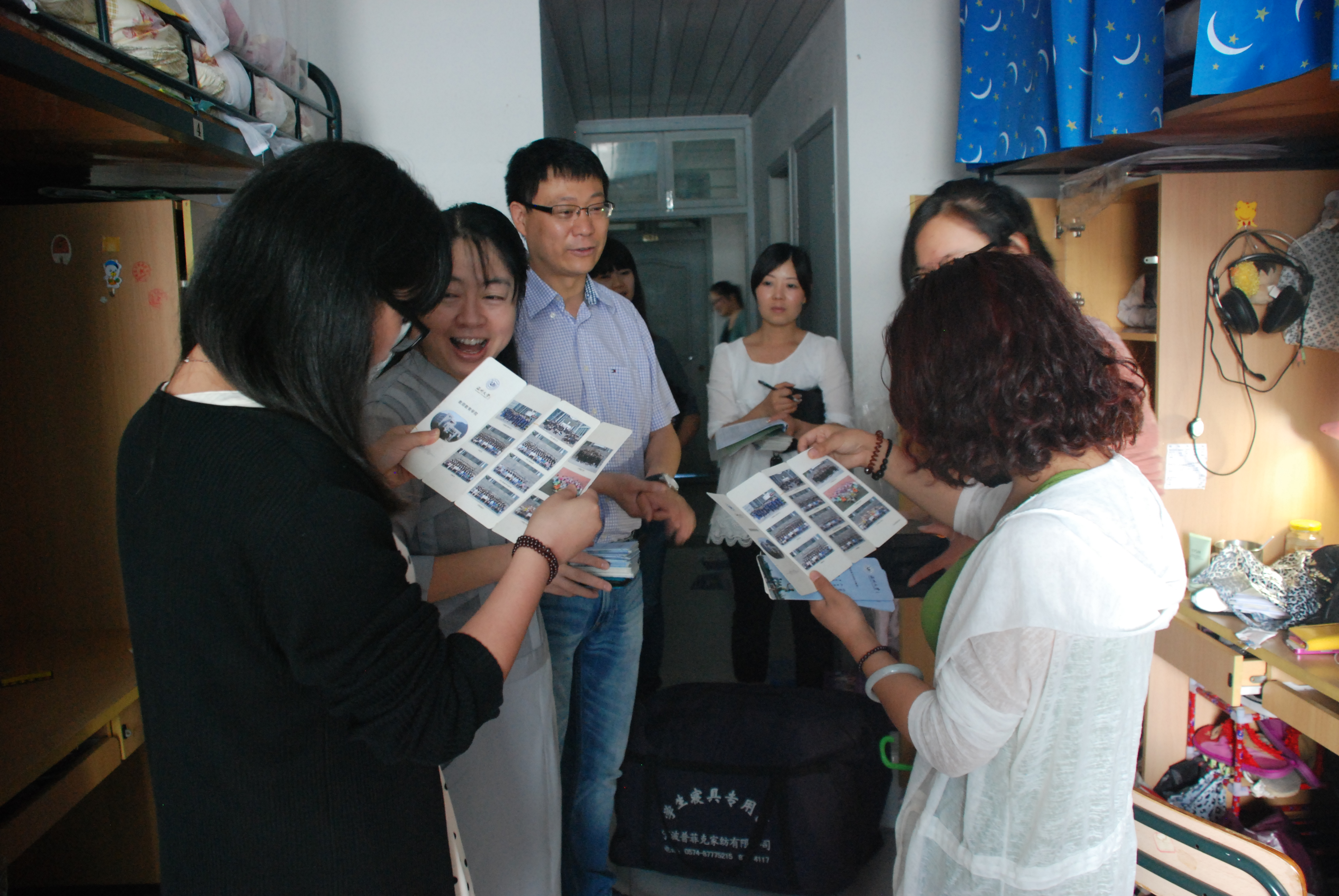 6月14日,太阳成集团tyc234cc在2013届毕业典礼后的第一个早晨,院党委书记蔡联群、副书记嵇小怡以及辅导员老师和在校同学们来到了毕业生的寝室,跟毕业生们一一送别,并赠送了有院长赠言的精美的书签和相册,共走访了80余个寝室,探访了近350名学生。