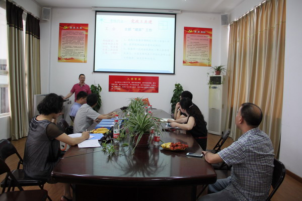 在蔡书记的主持下,考察工作开始。首先,考察组听取了院工会主席朱伟同志关于近三年工会工作的汇报。朱主席分别从“党政工共建”、“二级教代会制度、院务公开”、“围绕中心服务大局”、“工会自身建设”等四个方面向考察组进行了PPT汇报,并根据考核指标对我院的“教工小家”建设进行了自我评分。接着,考察组认真查阅了我院工会悉心准备的考核材料,并与我院党政工领导进行了深入的交流。在交流中,学院蔡书记和嵇副书记分别对学院的工会工作给予了充分的肯定,并向考察组补充介绍了我院“教工小家”建设中的一些特色品牌项目。
