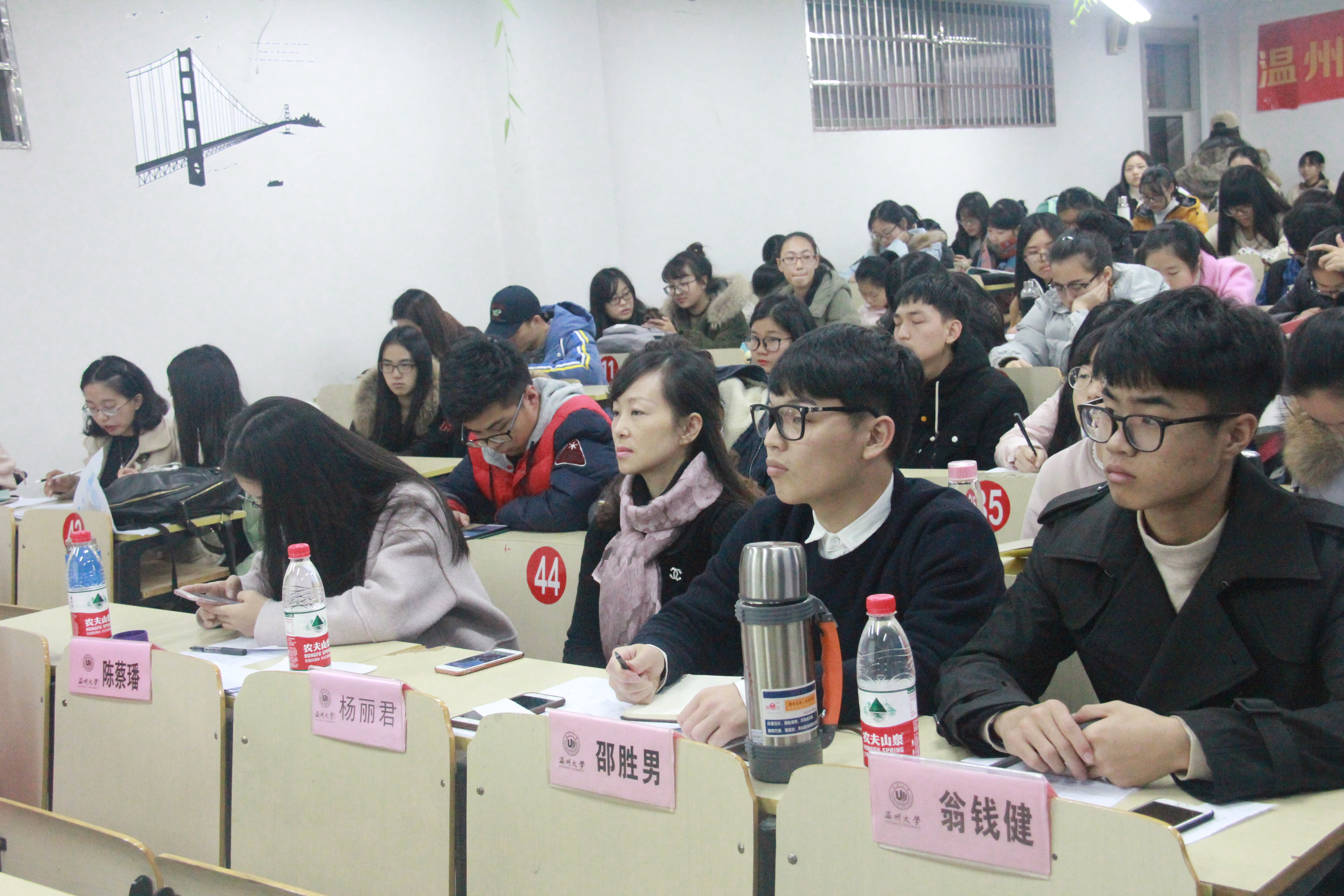 2016年12月14日下午2点,教院9c301教室里一场激烈的特色早晚自习评比活动拉开了帷幕,太阳成集团tyc234cc党总支副书记杨丽君老师、学生科邵胜男老师出席本次评比活动。此外出席本次大赛的评委还包括学生会副主席翁钱健、前学生会主席陈蔡璠。郑力玮担任比赛主持人。