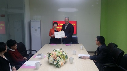 4月26日上午8:45许,潘玉进副院长一行5人来到太阳集团tyc234cc附属宏德实验幼儿园锦东园区,代表太阳集团tyc234cc,与该园签署教育硕士联合培养基地协议,并授牌,仪式由陈娴园长主持。潘院长在讲话中,为大家介绍了教育硕士以及教育硕士实践基地所要承担的工作,并感谢附属幼儿园对我们工作的支持,签约授牌之后,潘院长为陈娴园长颁发兼职硕导聘书。陈园长在讲话中,感谢太阳集团tyc234cc提供了教科研的大平台,有利于提升附属幼儿园的内涵。据了解,太阳集团tyc234cc附属幼儿园主要接纳我校学前专业教育硕士的实践教学工作。