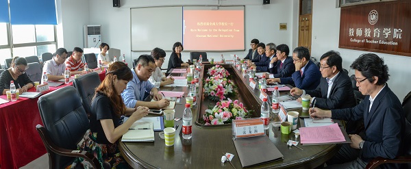 下午,韩国客人来到了学院教学楼,钱强副校长热情欢迎丁校长一行并合影留念。双方在会议室进行了友好会谈。孙芙蓉院长代表学院致欢迎辞,并介绍学院情况。丁炳硕校长及金会洙院长也热情介绍了韩国全南大学以及教育学院的发展情况。双方就教师教育项目合作,教师交流访学、学生交换项目,联合培养博士、硕士项目以及科研合作等工作进行了深入洽谈,并期待在已经开展十年友好合作的基础上,进一步深化教育合作关系。通过友好沟通与交流,双方就相关合作项目达成多点共识,相信在学校国际化发展战略指引下,学院国际化办学将迈出新步伐。