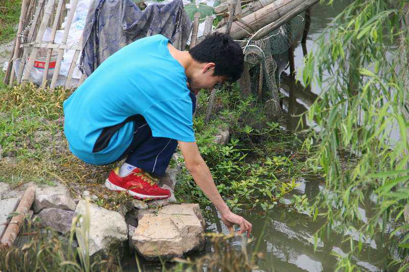 活动的最后,同学们和志愿者一起,在村庄里的小河旁开展河道巡查工作,志愿者们沿着河道进行各处水样采集与水质监测,每当小朋友们提出疑问,志愿者们就会耐心的进行解答。