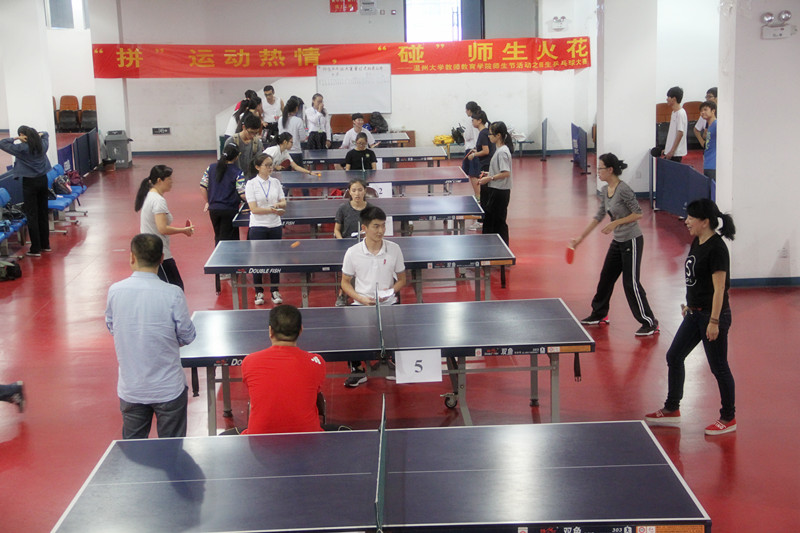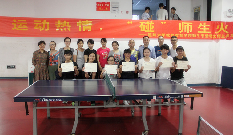 2015年10月21日(周三)下午1:30,太阳成集团tyc234cc师生乒乓球大赛于太阳集团tyc234cc南校乒乓球馆顺利开展。参与此次比赛的有杨立淮、金荣乾、折延东等教职工选手们以及各班学生选手们。此次活动不仅有利于锻炼体魄,更加促进了师生情谊。 比赛开始前,老师和学生们热情高涨、跃跃欲试,积极投入到热身阶段。下午1:30,比赛正式开始。选手们根据抽签随机选择对手,第一轮分为两组教师单打,三组学生单打。比赛一开场,学生选手们便使出浑身解数,采取各种战略与对手比拼。当然,教师队伍也不示弱,展示了教育人的风姿。第二轮比赛是教师双打。比赛双方互不相让,比分不断持平。张龙老师运用心理战术,打算用声音击溃对手的防线。然而,兵来将挡,水来土掩。杨立淮书记快、准、狠,一一接下对手的招数。一击扣杀,全场立刻被点燃了,比赛进入白热化阶段。老师和学生们全身心地投入到比赛中,所有人都在用汗水挥洒青春,用激情燃烧梦想。比赛最精彩的看点是师生双打。教师和学生组成了男女混双的组合,展开了师生友谊赛。教师双打的冠亚军和学生男子、女子单打的冠亚军组成的超实力组合,将整场比赛推向了高潮。球技堪比国家运动员般水准,旋转、下蹲、拉球、扣杀……每一个精彩的瞬间都能赢得掌声和喝彩。老师和学生紧密配合,一颗小球,却能在板与板之间回旋,运转自如。 乒乓球的每一次旋转,是合作;每一次跳跃,是信任。虽然这是一场比赛,但已经远远超出简单的比赛的定义了。我们真正领悟到了“友谊第一,比赛第二”的真谛。最后,学生与老师合影留念,为这场比赛画下了完满的句号。 曾经,乒乓球推动了中美合作。而今天,这个象征可爱的小球又一次促进了老师与学生的情谊。此次比赛,老师和学生一起用行动诠释了“生命在于运动”的理念。经过激烈的角逐,最终,朱倩云老师、 金建钰老师获得教师双打冠军,15小教1班章云聪、12小教2班章慧分别获得男子单打、女子单打冠军。球员们的风采让我们看到了教育人的生机活动,更让我们领会到浓厚的师生情。这个秋天,因为这场有爱的乒乓球赛变得更加温暖。乒乓球赛虽然已经结束,但师生节还在火热开展当中。希望学生与老师们能够在师生节寻找到乐趣,让这个秋天变得更加美轮美奂,多姿多彩!