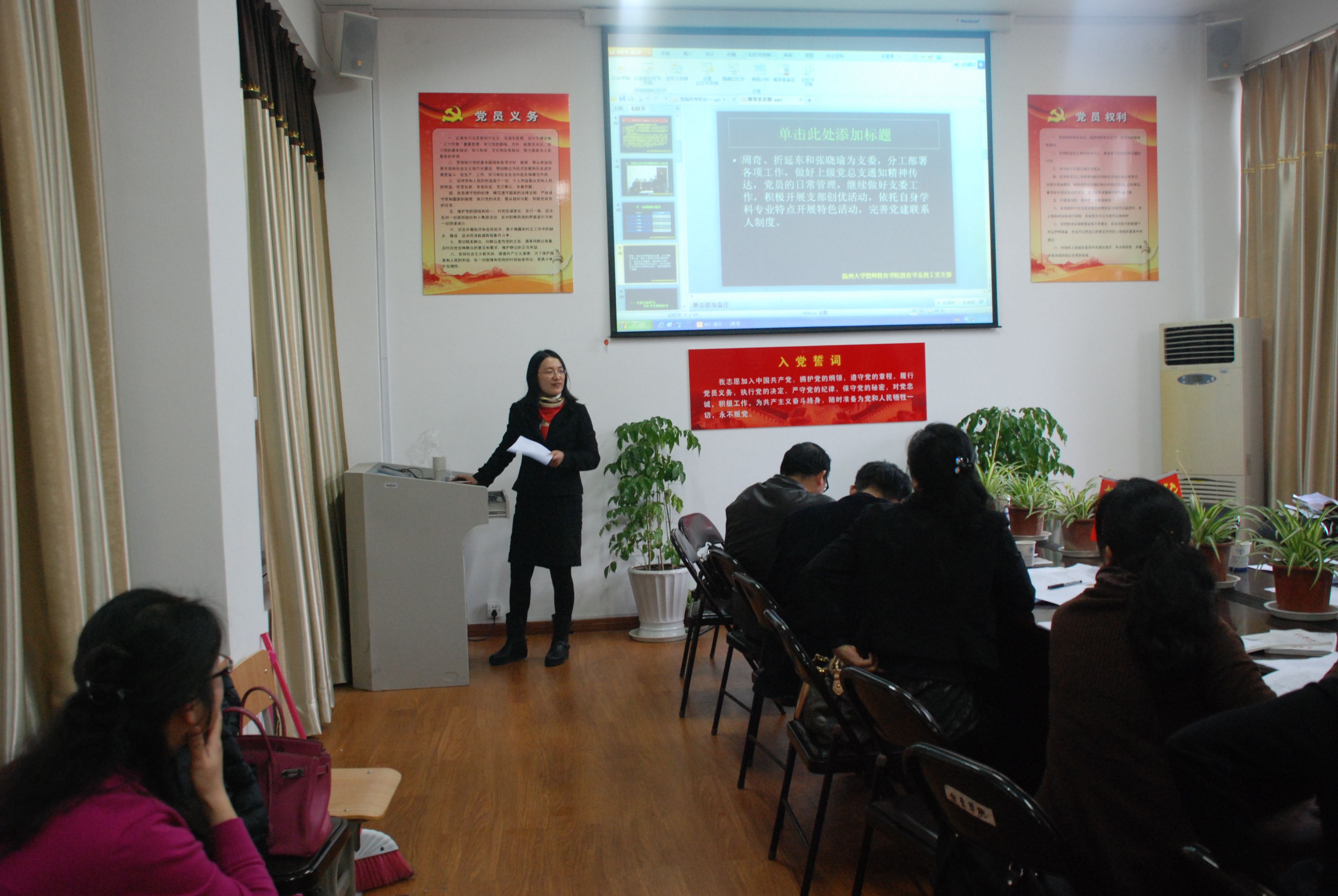 基层党组织建设创新是党组织与时俱进、永褒活力的源泉。太阳成集团tyc234cc党总支高度重视基层组织建设,坚持“一部一品”,扎实推进。一年一度的党支部考核交流会于3月20日举行,8个党支部通过PPT进行展示,就基层组织建设、支部战斗堡垒作用、党员教育管理、发展党员工作、群众工作等五个方面进行了总结,重点对本支部的特色进行汇报,教育学系教工党支部以服务地方为特色,以家庭教育公益讲座为载体,在温州教育界享有胜誉;心理学系教工党支部指导的微笑联盟、心理测量工作坊,走出了一条服务社会的新路子;学前系教工党支部以艺术教育为切入点,打造儿童剧和“红歌背后的故事”品牌,在服务地方和科研教学相结合、党课教育和艺术教育结合上找到契合点;小教系教工党支部,在师范生技能培养方面,利用语言、书法工作坊等平台,在普通话推广、师范技能竞赛、书法比赛等领域取得了累累硕果;教技系与实验中心党支部开展的师生支部共建,多媒体技能应用与专业教育等工作,深受学生喜爱;宏德幼儿园党支部,党员教师群策群力,促进幼儿园硬件和软件发展;研究生党支部结合研究生自我管理和教育、科研与实践,开展了大量的工作。通过展示,党支部的战斗堡垒作用非常显著,凝聚了我院研究生合力。