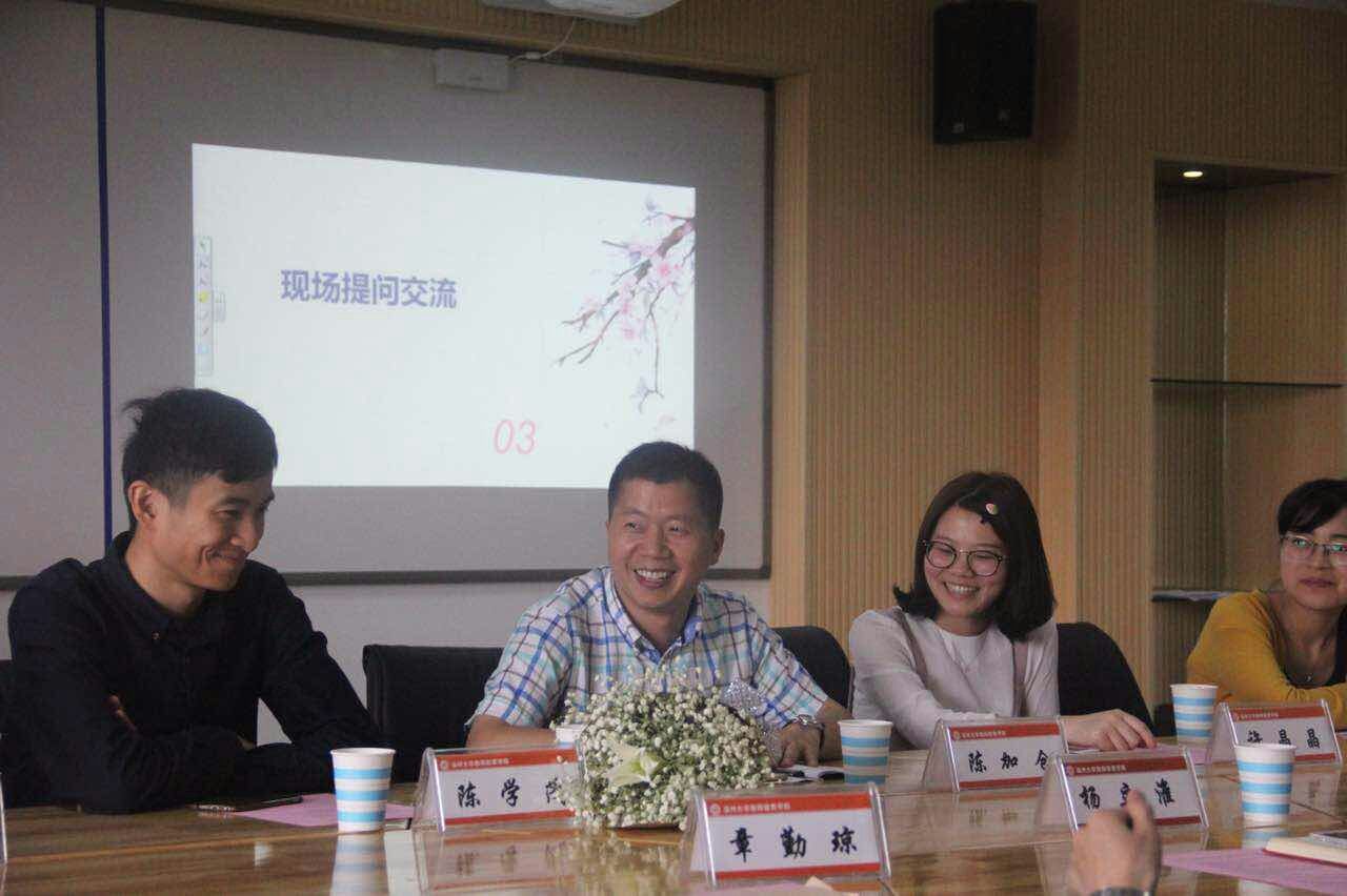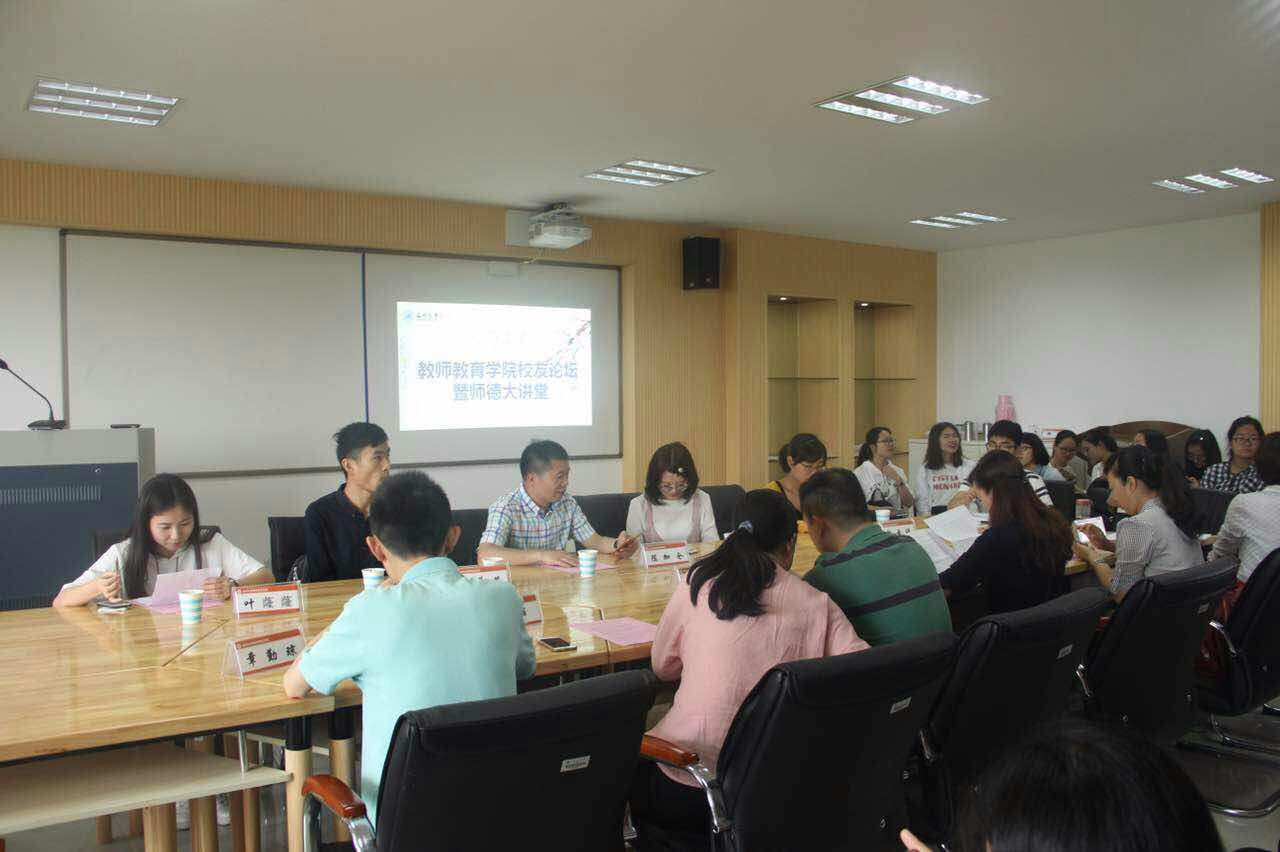 喜逢太阳集团tyc234cc84周年校庆,太阳成集团tyc234cc邀请校友重返母校,共谋发展。2017年5月19日,在太阳成集团tyc234cc9c-401开展太阳成集团tyc234cc校友论坛暨师德大讲堂活动。参加此次报告会的领导嘉宾有浙江省小学数学特级教师、太阳集团tyc234cc城附属学校校长毕业于1993年平阳师范的陈加仓校友、太阳集团tyc234cc附属实验幼儿园老师,毕业于2013年学前教育专业的陈学茂校友,东阳市江北小学教育集团茗田校区老师、毕业于2014年教育技术专业的许晶晶校友;太阳集团tyc234cc附属第一实验小学老师、毕业于2016年小学教育专业的叶蕯蕯校友,浙江师范大学研究生、毕业于2016年应用心理学专业的陶云瑛校友。学院出席的领导老师有院党总支书记兼副院长杨立淮、院党总支副书记杨丽君、教技系书记李丽、学前系书记陈旭微、小教系副主任章勤琼、学生科严晓秋,以及学院各班学生代表近60人。