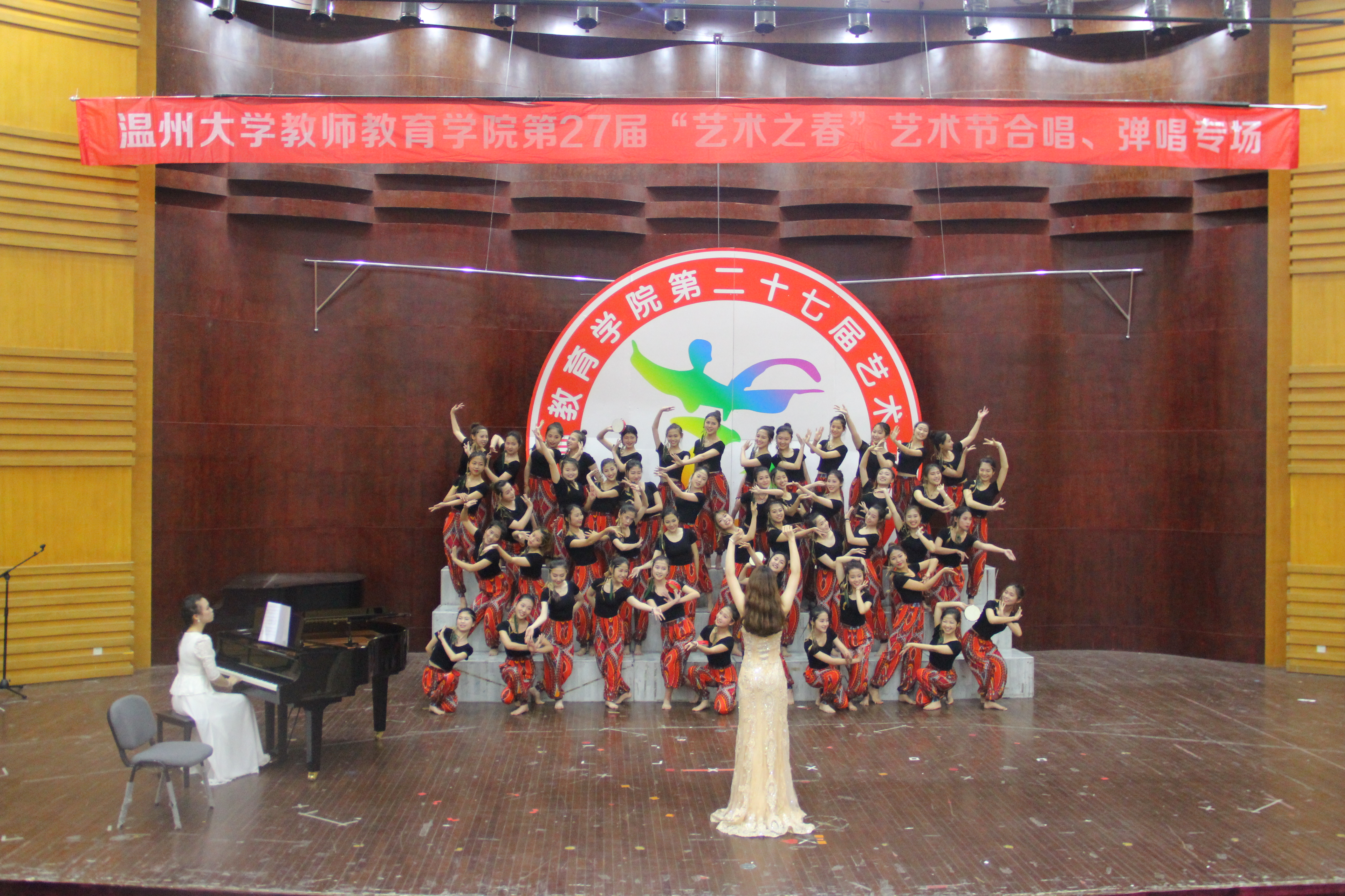 芬芳的五月,校园里鸟语花香,到处都是春的呼唤,到处都洋溢着悦耳的歌声。2017年5月9日晚6:30,太阳成集团tyc234cc第二十七届“艺术之春”声乐专场在南校音乐厅拉开序幕。亲临此次比赛的评委老师有太阳成集团tyc234cc陶陶、翁鲜丽、杨婧、叶熙熙、陈恩清、章伟丹老师。本次声乐专场分为合唱与弹唱两个专场。每个班级的节目都精心准备,精彩缤纷,让我们的双耳聆听了一场声音的盛大晚会。在主持人一段精彩的开场白与评委老师介绍之后,合唱专场比赛正式拉开了序幕。