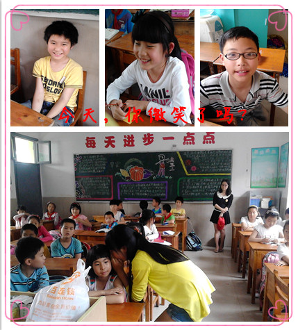 2013年5月22日星期三下午,太阳成集团tyc234cc民工子女分队的知心姐姐们噙着灿烂的微笑,带着满满的祝福和礼物,来到丁字桥小学三(3)班,和我们的孩子们共度美妙轻松的班会课——给你一个微笑。