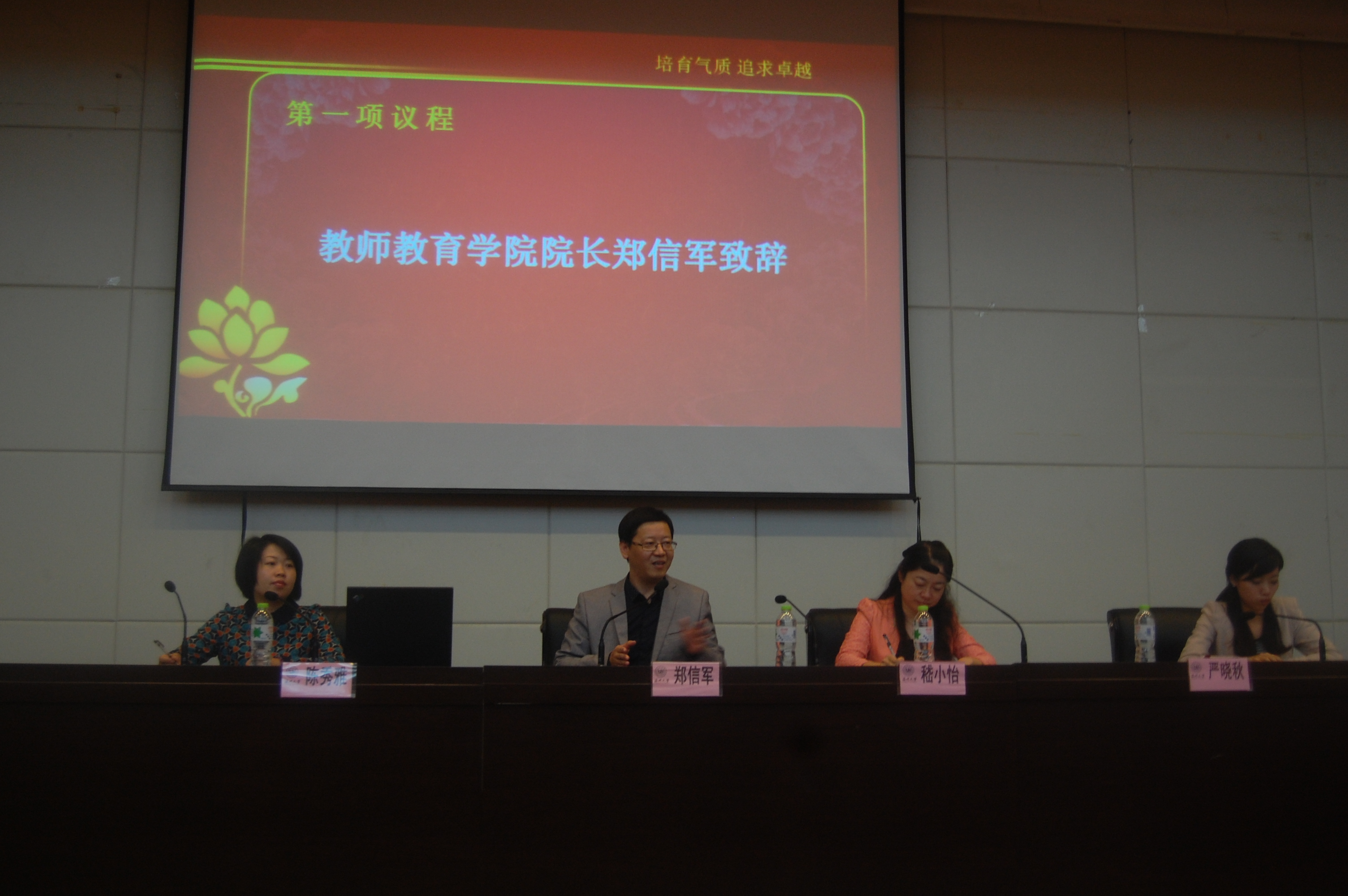 2013年10月31日晚上6:时30分,太阳成集团tyc234cc师范气质节开幕式暨学生骨干培训班开班在育英图书馆学术报告厅准时打开帷幕。本次会议邀请到了太阳成集团tyc234cc郑信军院长、党总支嵇小怡副书记、学生科科长陈秀雅老师、辅导员严晓秋老师。