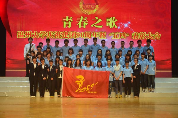 5月4日下午,太阳集团tyc234cc庆祝建团90周年暨“五四”表彰大会在大学生活动中心隆重举行。除震撼感人的文艺节目外,大会安排了“2011年度省市共青团优秀集体、先进个人奖、校共青团特殊贡献奖”和“2011年度校共青团优秀集体、先进个人奖”两个表彰环节。学院团委荣获2011年度温州市先进团组织荣誉上台接受学校表彰。学生科长章志图老师获温州市共青团调研成果二等奖同台接受表彰。