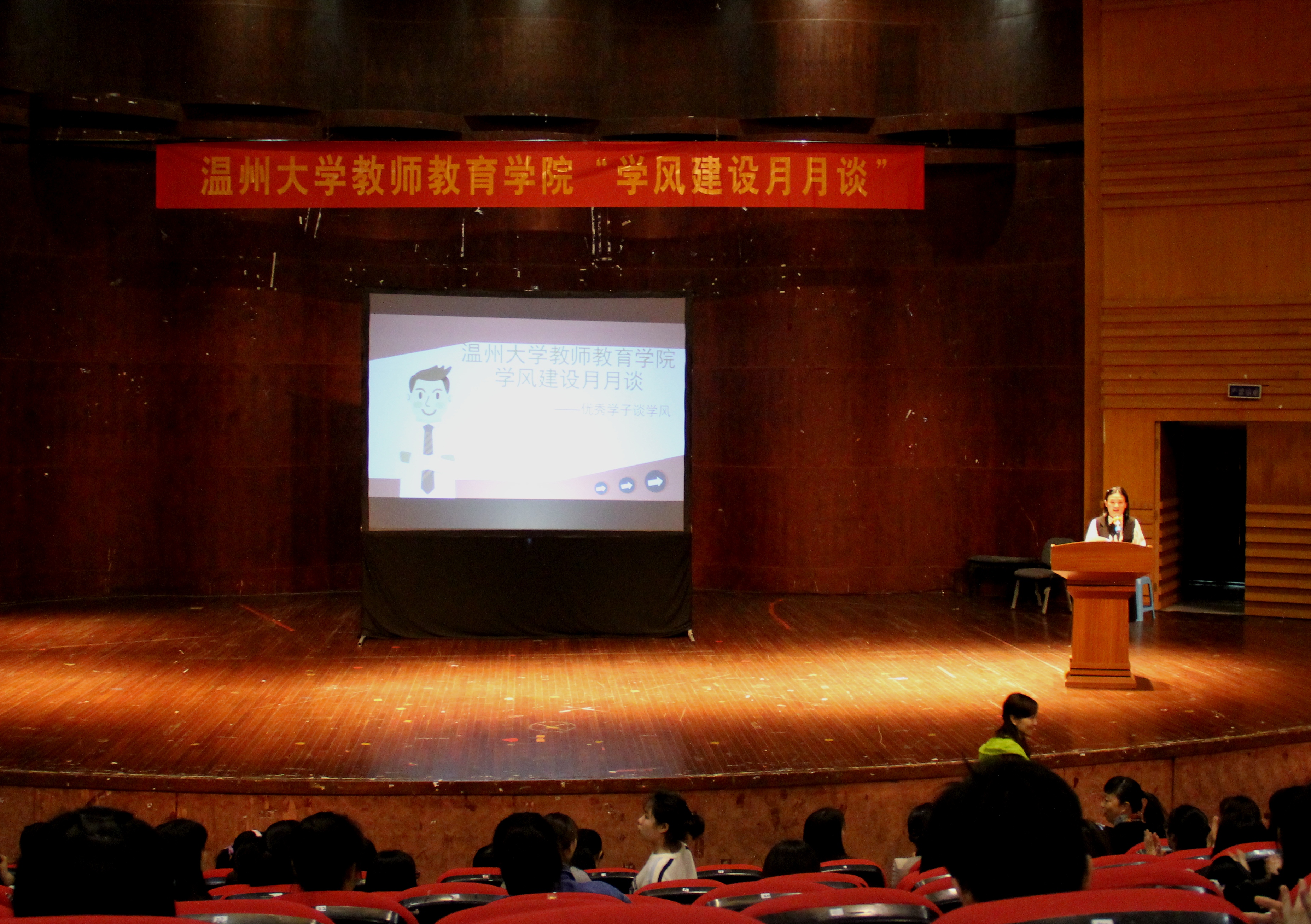 2016年4月6日星期三晚6时30分,太阳成集团tyc234cc“学风建设月月谈”主题交流会在南校音乐厅拉开了帷幕。党总支副书记杨丽君老师、学前教育党支部书记陈旭微老师、学生科副科长林萍,辅导员严晓秋、邵胜男老师出席本次讲座,到场嘉宾和优秀学生代表共议学风那些事儿。