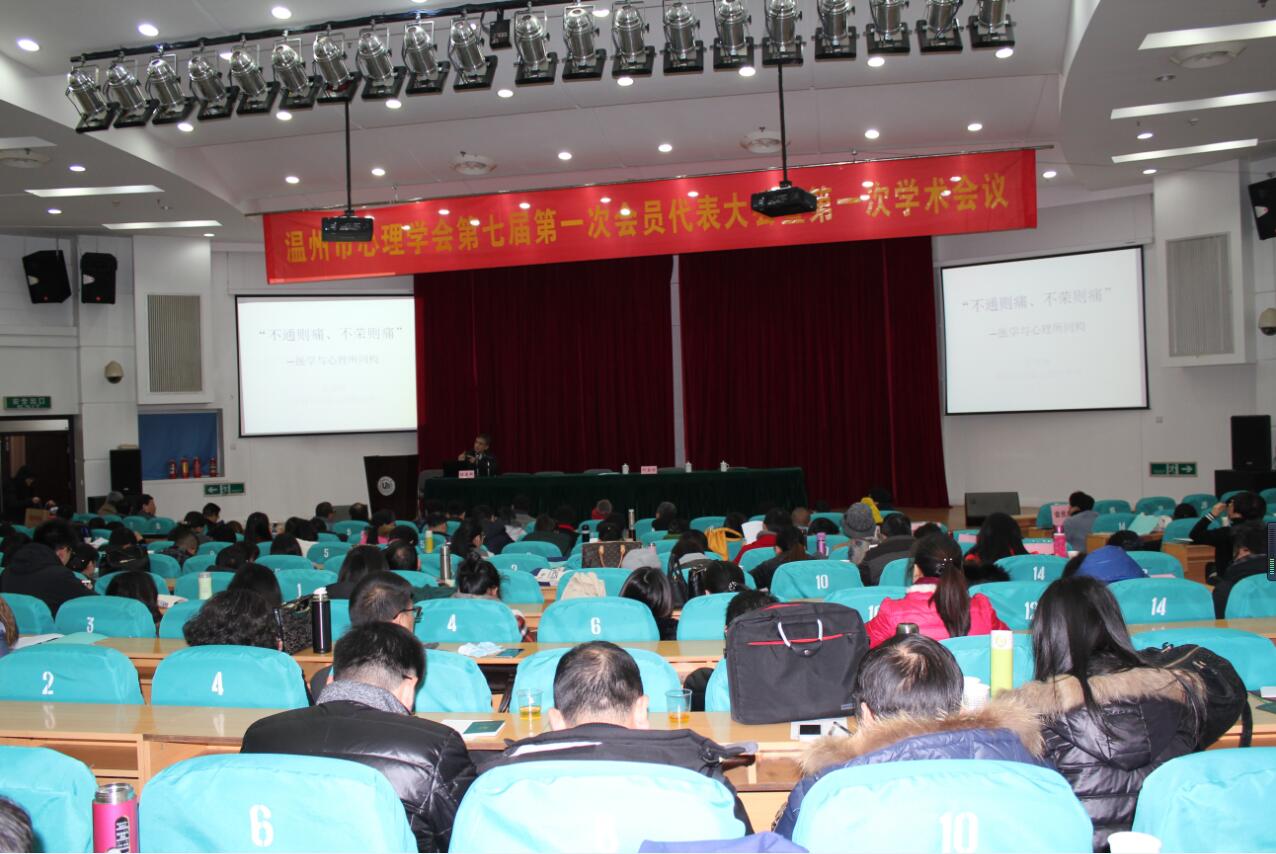2016年1月24日,正值温州寒流的第一天,呼啸的冷风席卷而来,然而零下7摄氏度的严寒没有阻挡我们的热情,温州市心理学界的同仁们齐聚太阳集团tyc234cc继续教育大楼报告厅,出席温州市心理学会第七届第一次会员代表大会暨第一次学术年会。温州市心理学会成立于1999年,是温州市心理学工作者依法登记、自愿组成的、具有公益性、学术性的法人社会团体,是温州市科学技术协会的组成部分,是集教育、临床医学、社会工作等各领域心理学专家于一体的人才资源库,是发展温州市心理科学事业的重要社会力量。此次代表大会的召开是温州市心理学界的一件大事,更是温州市心理学会发展史上的一个盛典。