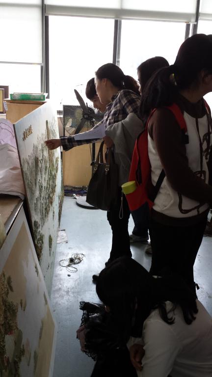 在参观完瓯塑研究所后,美术工作坊的成员根据自己的个人爱好以及要进行创作的作品门类,各自参观了瓯绣研究所,发绣研究所,细纹刻纸研究所,沥粉画研究所等。通过这次活动,美术工作坊每个成员都有自己收获和感受。