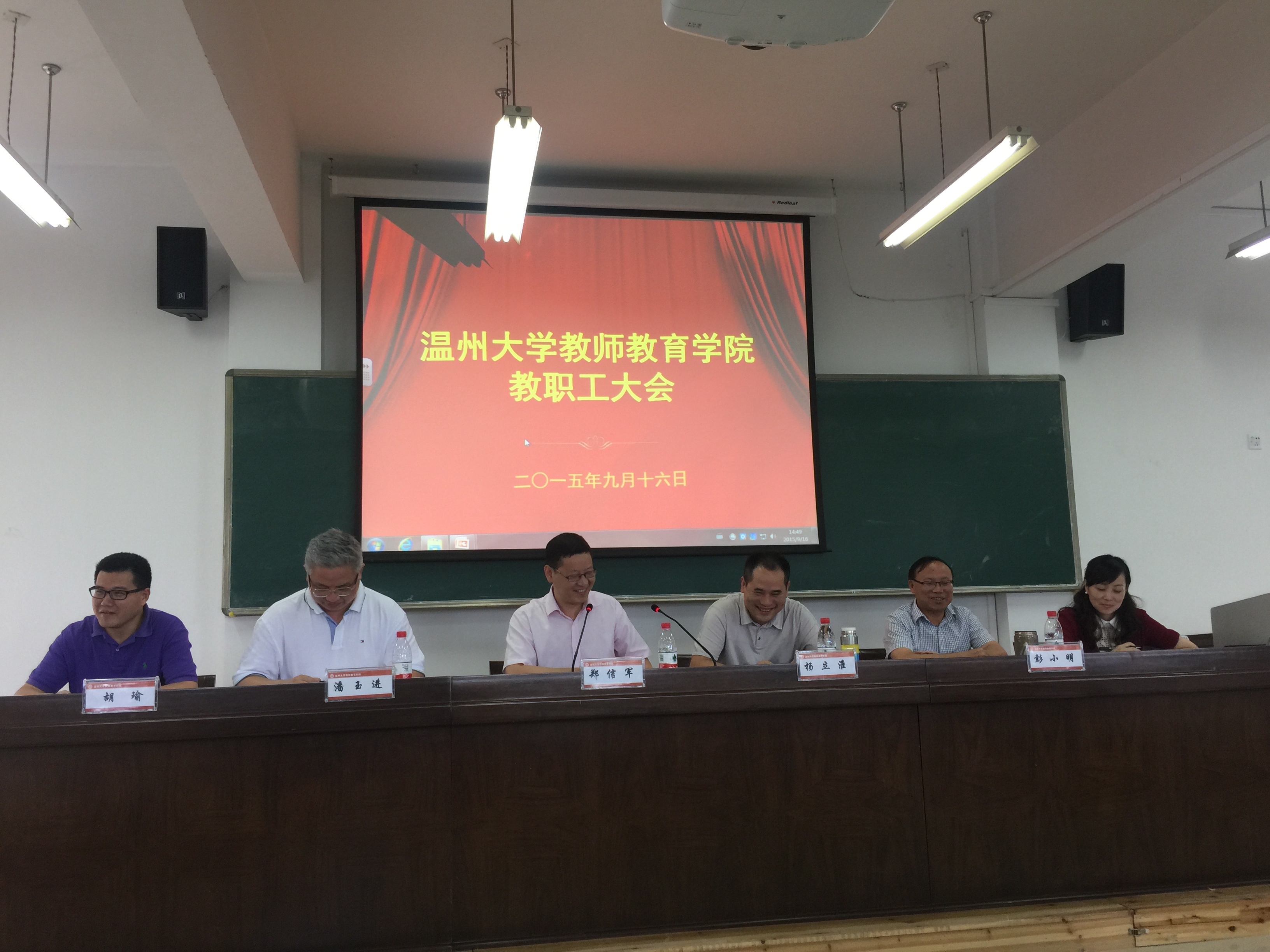 郑信军院长就本学期的学院工作重点和思路发言。他指出,接下来,学院发展要以人才培养为重,队伍建设为本,文化建设为领;以国际化、地方化、特色化为抓手,全面投入本科教学审核性评估,全面总结反思十二五以来取得的成绩和不足,科学编制学院的十三五发展规划,科学编制学院岗位津贴分配办法。