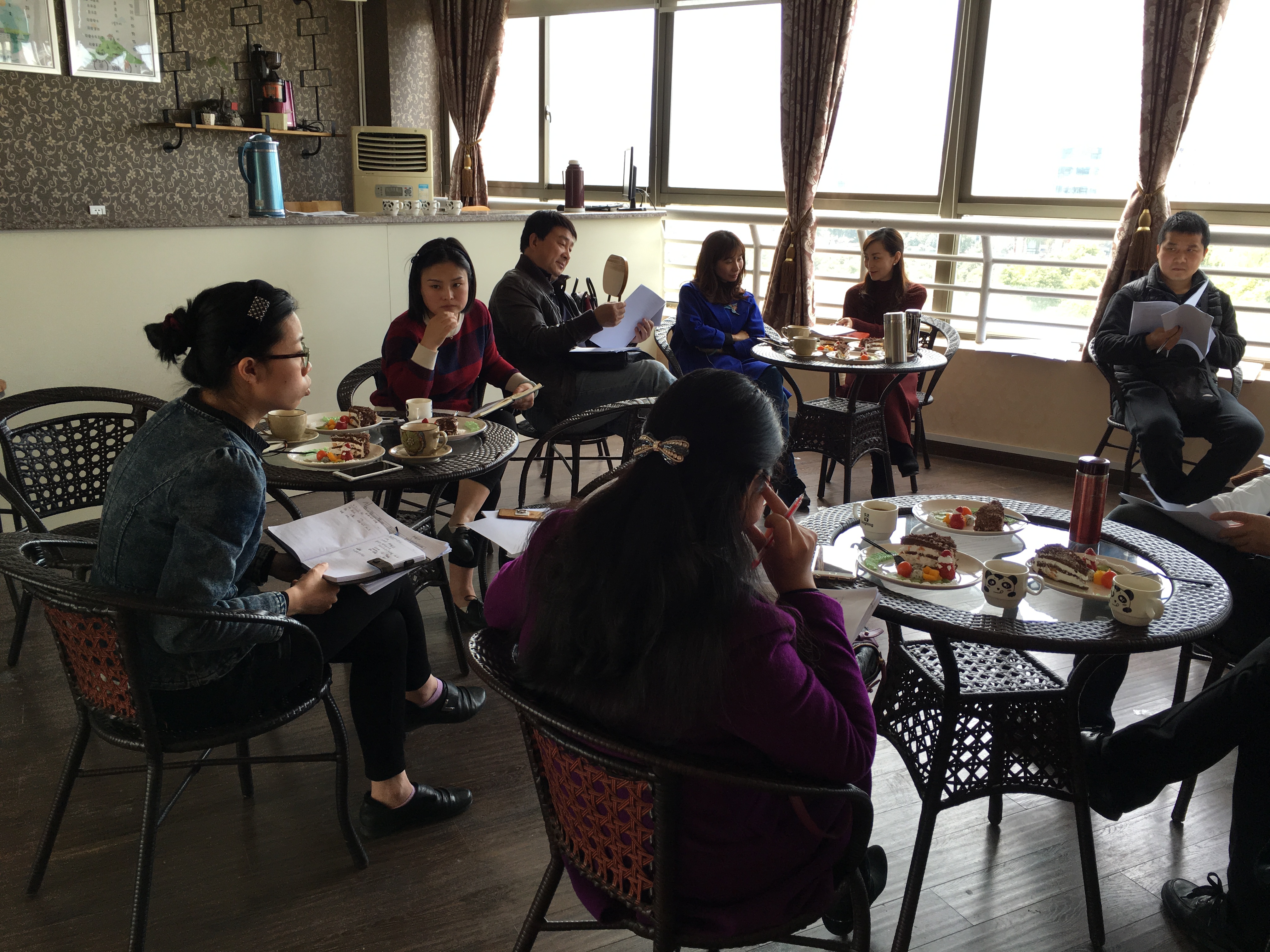 会议中气氛融洽,各个老师交流经验,品尝糕点,其乐融融,会议进行的非常顺利。