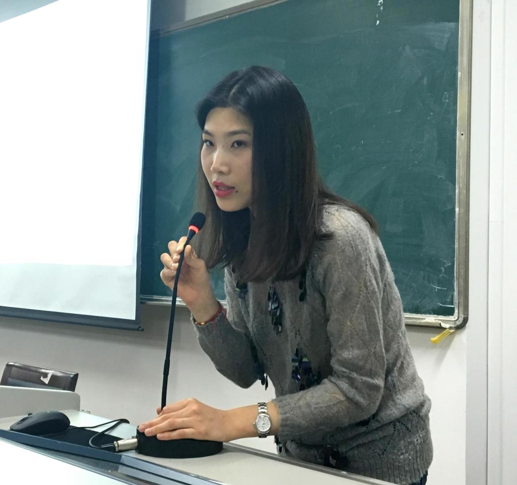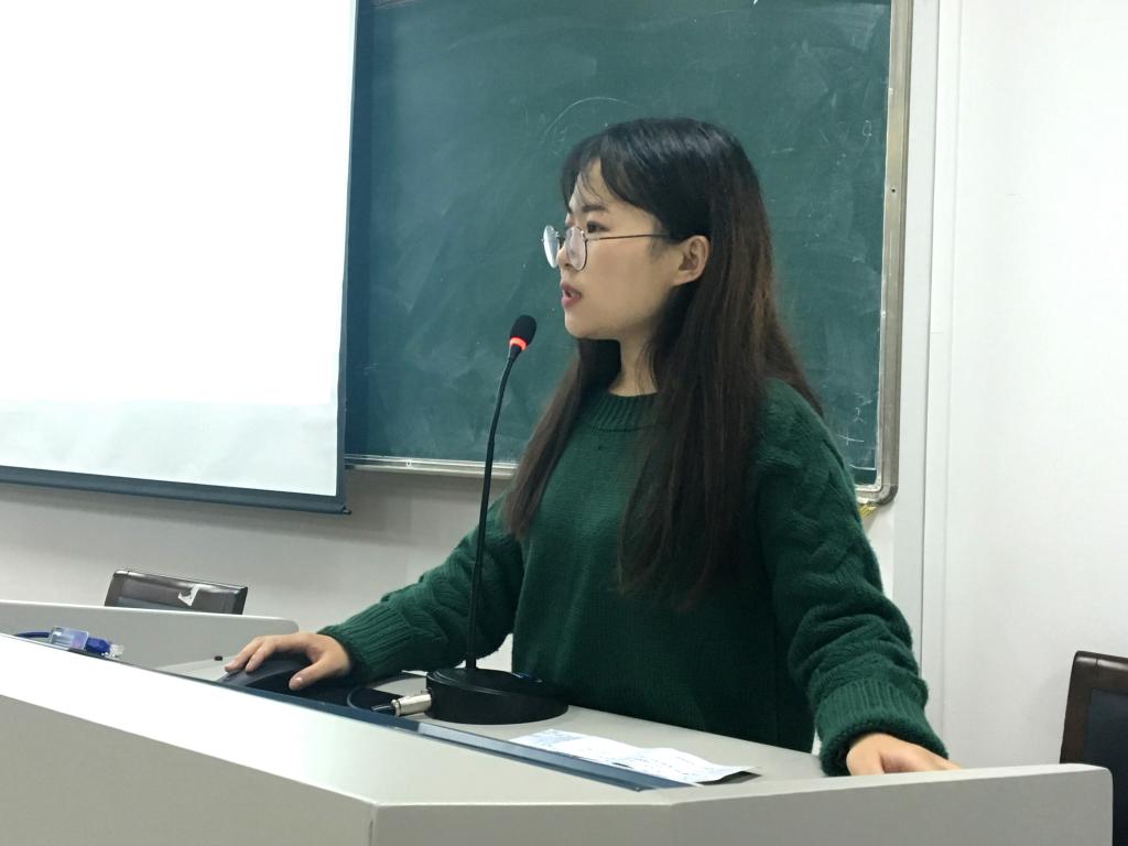 在大家的掌声中迎来第一位来分享论文发表经验的朱莹莹学姐,她与同学们分享了自己当初写论文的心路历程。她回忆自己当初论文的内容是研究人在竞争情况下的认知冲突。并指出她在第一次写论文时也有过不知所措,但在老师的建议下,她看了许多许多的外文书籍,因为外文书籍不会与他人的文章摘记有重合,有自己的特色。之后又开始进行实验设计、实验实施,最后投稿。当知道最后收到录用通知书时,她都不敢相信她可以做到这一切。最后朱莹莹学姐送了我们一句话:不要做思想上的巨人,行动上的侏儒。