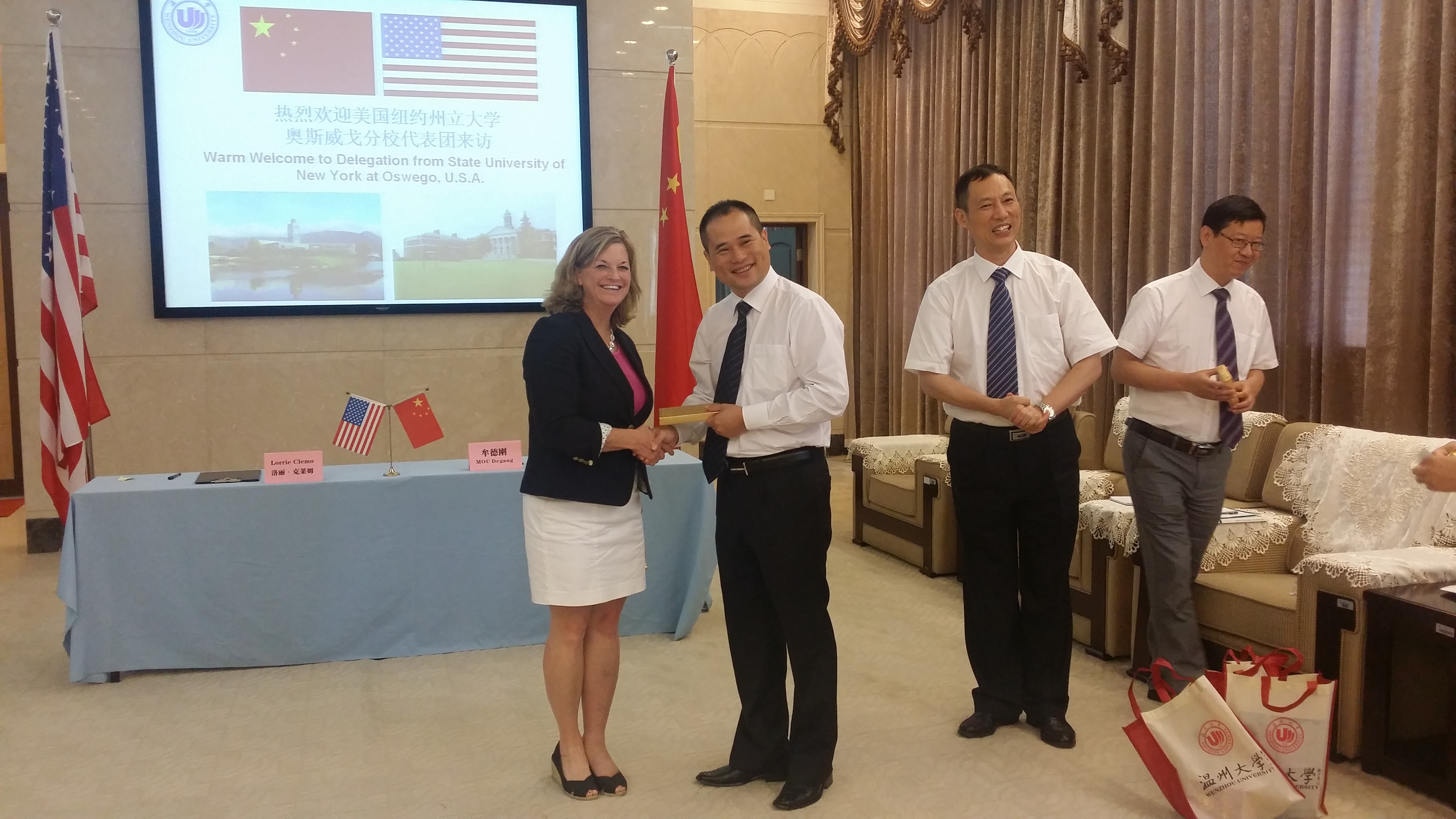 据悉,该协议旨在开展我院和纽约大学奥斯威戈分校的深层次的合作办学----我校学生在温大进行3.5年本科学习阶段后,通过雅思6.5或托福80,到纽约大学奥斯威戈分校进行1.5年的硕士阶段学习,成绩合格,可获得太阳集团tyc234cc本科学士学位和纽约大学奥斯威戈分校硕士学位。