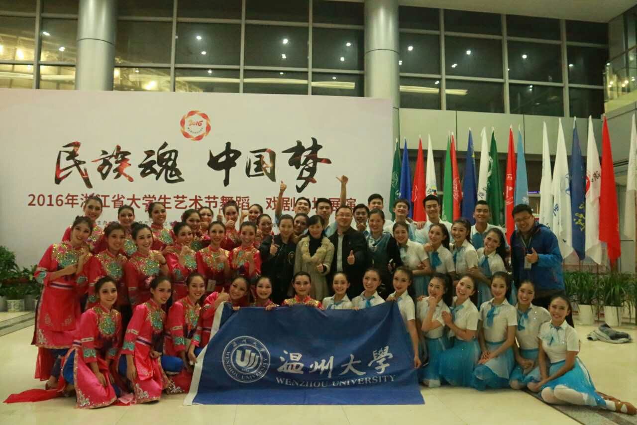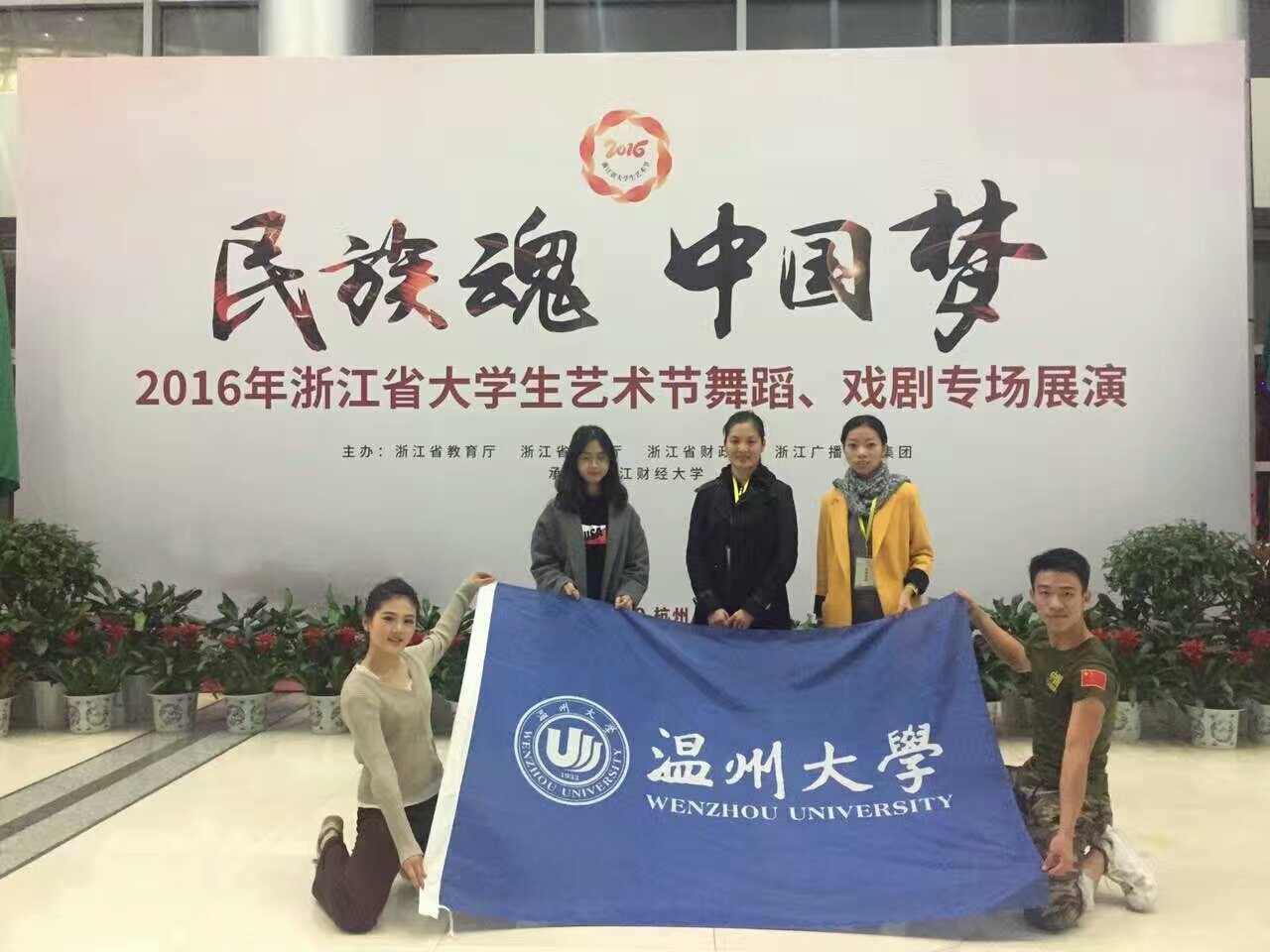 近日举办的2016浙江省大学生艺术节在杭州圆满落幕。在为期一周的现场展演中,太阳集团tyc234cc学子展现风采,斩获6项一等奖,4项二等奖。其中太阳成集团tyc234cc选送的6个节目——群舞《创业园里的青春》、群舞《花儿娜泽》、双人舞《夫妻哨》、话剧《搭把手》、十佳作品《绿色心情》均获2016年浙江省大学生艺术节展演比赛一等奖,十佳作品《一路上有你》获二等奖,部分节目获网络人气奖、最佳组合奖等,其中2个一等奖喜获一等一的佳绩!