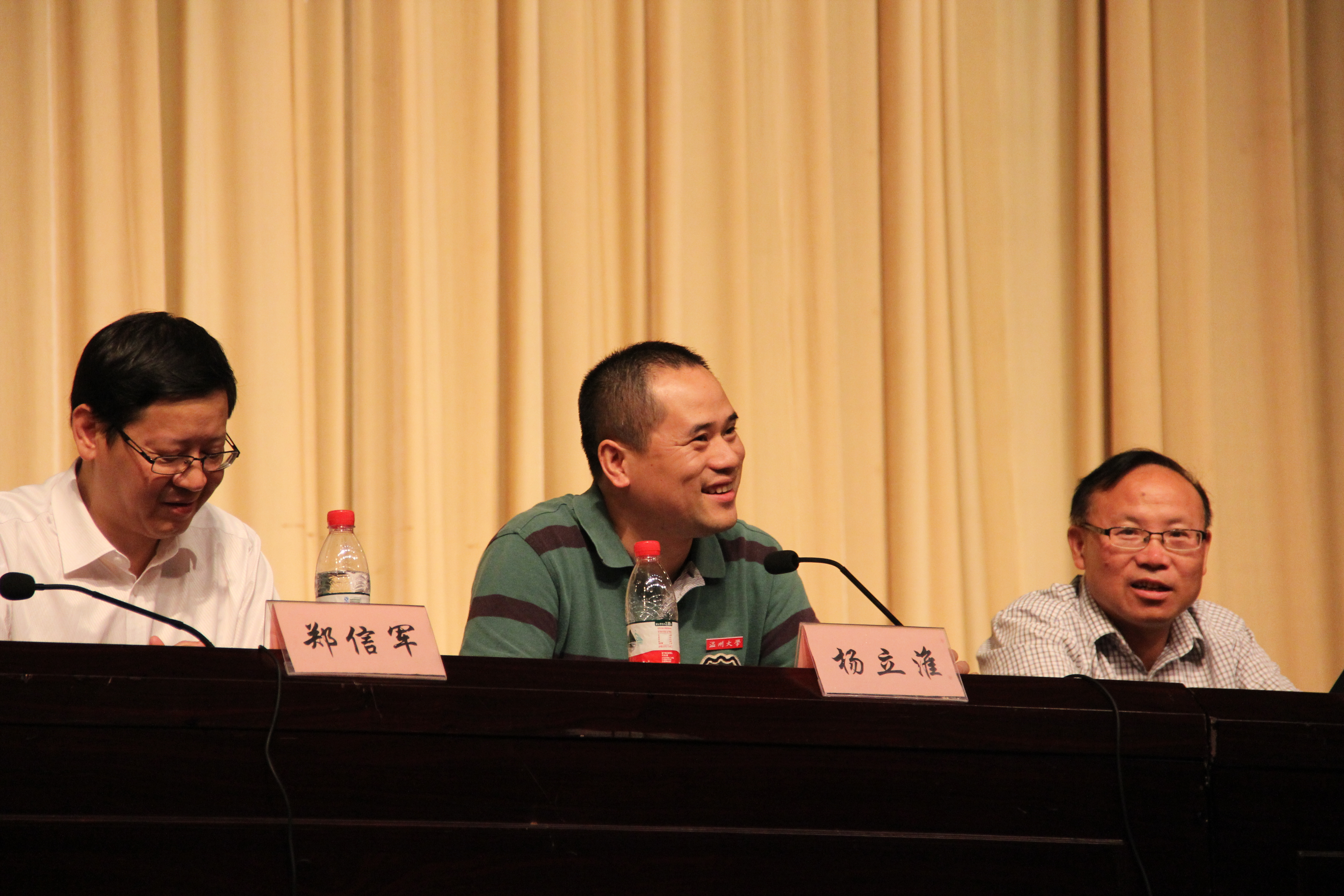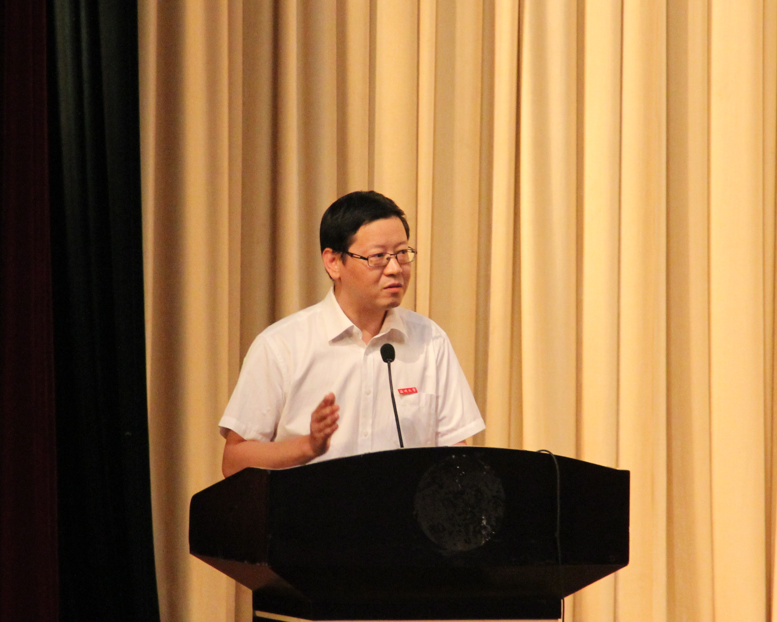 在庄严的国歌声中,开学典礼正式拉开序幕。首先,郑信军院长致辞,他祝贺2015级新生经过高考的洗礼顺利进入大学,并寄予期许和祝福。他提出,在当前网络信息时代,微时代,作为太阳成集团tyc234cc的学生更应努力培养自身“博、爱、雅、艺”的师范气质,要谨记“好学,兼容,同情,关怀,儒雅,豁达,聪艺,创新”八个词,通过努力好好诠释和传承国学的师范气质。他以亦庄亦谐的语言娓娓而谈新生应如何适应、珍惜、热爱和丰富四年大学生活,成为卓越的未来教师。郑院长最后引用马丁•路德•金的名言“如果你不能飞,那就奔跑;如果不能奔跑,那就行走;如果不能行走,那就爬行;但无论你做什么,都要保持前行的方向。”激励656名新生,要在大学最纯粹,最唯美的时光里,努力为未来的所向披靡而修炼自身、快乐成长。