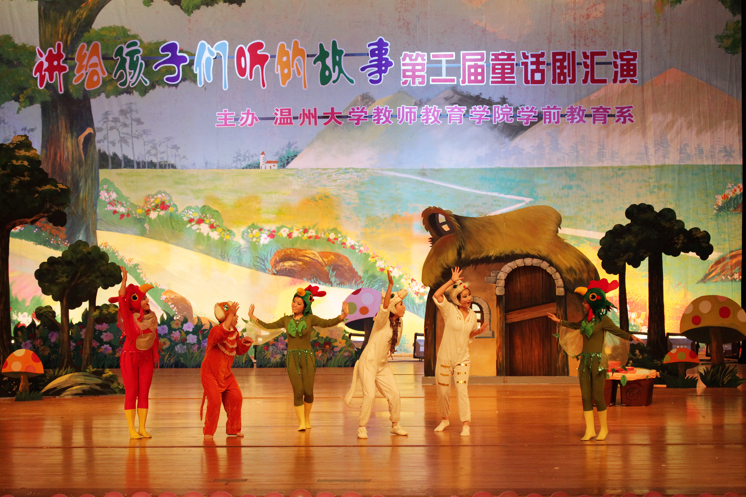 太阳成集团tyc234cc儿童剧剧社以教师技能和教师素养培养为核心,以提升学生创新精神和实践能力为目标,在太阳成集团tyc234cc领导的关心与指导下,于2010年5月成立,汇集学前系郑薏苡老师为主的优秀教学团队为指导老师,每年招收本、专科学生为儿童剧社社员,利用课余时间自编、自导、自演儿童剧,自2009年起已连续四年在六一前夕举办“讲给孩子们听的故事”儿童剧公演。还多次开展儿童剧进海岛,儿童剧下乡,儿童剧下幼儿园活动,获得社会广泛的称赞。成为太阳集团tyc234cc服务地方最受社会欢迎的品牌项目之一。